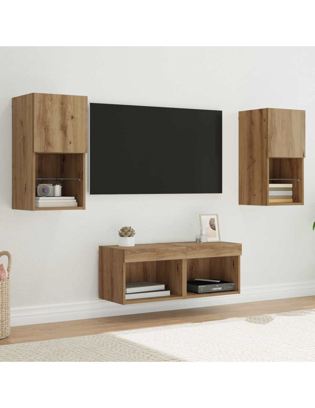 Questi mobili TV moderni cambiano completamente l'aspetto degli spazi contemporanei con il loro design elegante e semplice. Fatti di legno ingegnerizzato, uniscono perfettamente stile e funzionalità, offrendo una soluzione originale per riporre le cose in qualsiasi stanza.