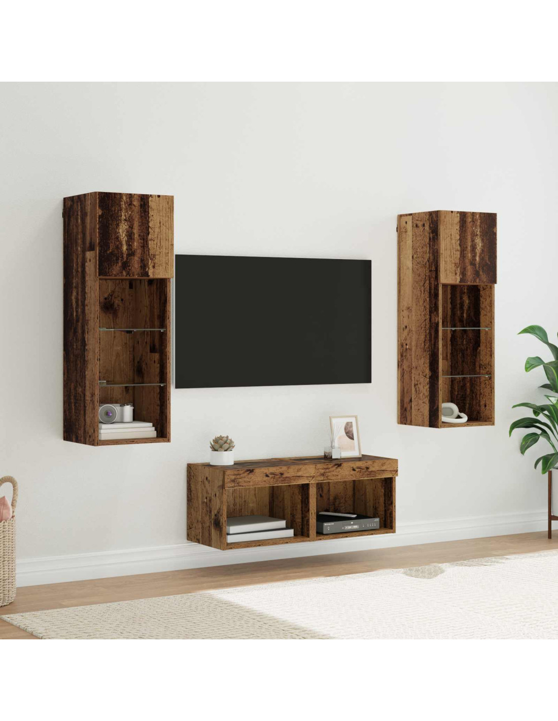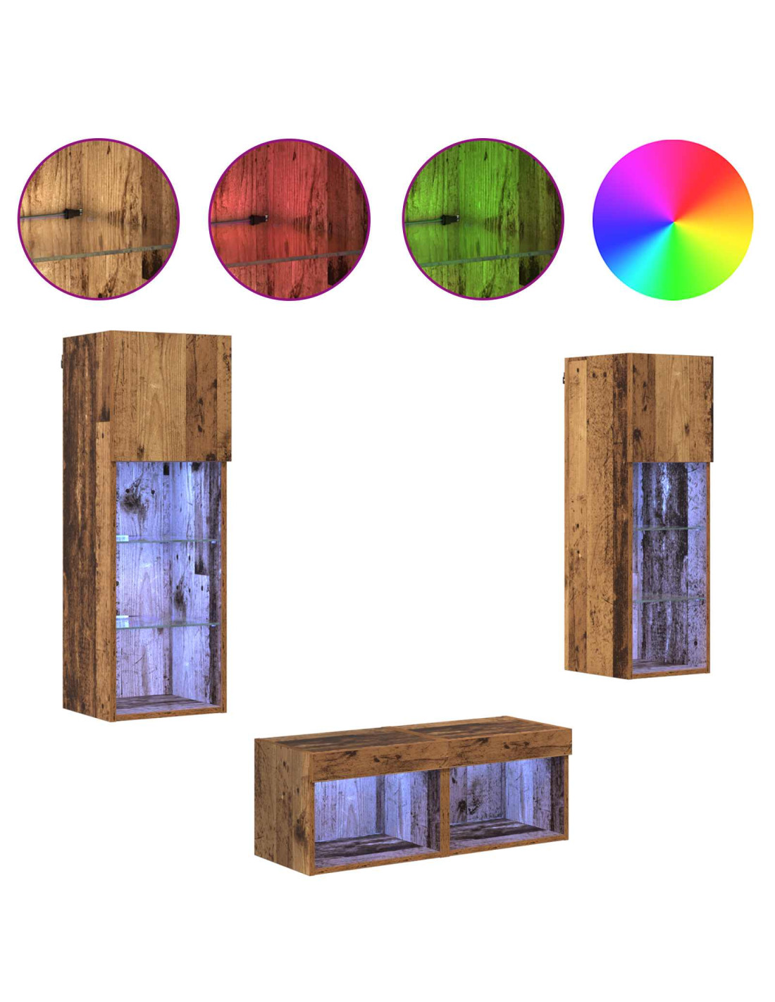 - Caratteristiche di design: Il design a parete salva spazio e offre praticità. Le strisce LED aggiungono un tocco di atmosfera, rendendo questa unità non solo funzionale, ma anche estetica.