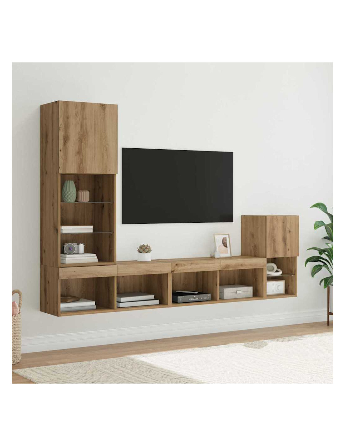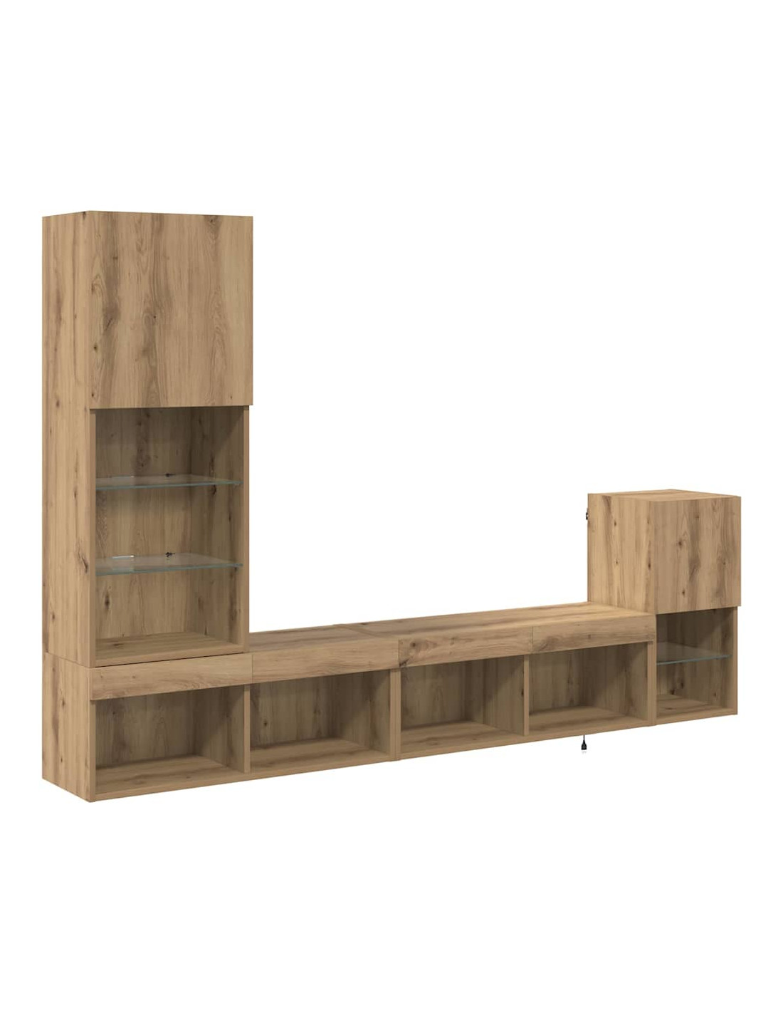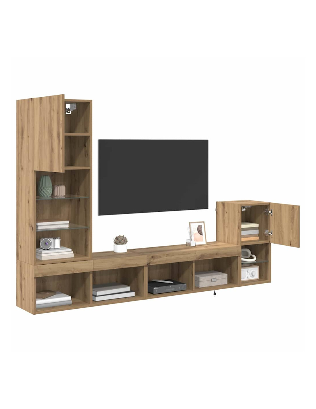Questa unità TV a 4 pezzi combina un'estetica moderna con funzionalità robusta, diventando un elemento centrale in qualsiasi soggiorno. Con il suo design elegante, aiuta a tenere tutto in ordine, offrendo soluzioni sofisticate per riporre oggetti multimediali e decorativi.