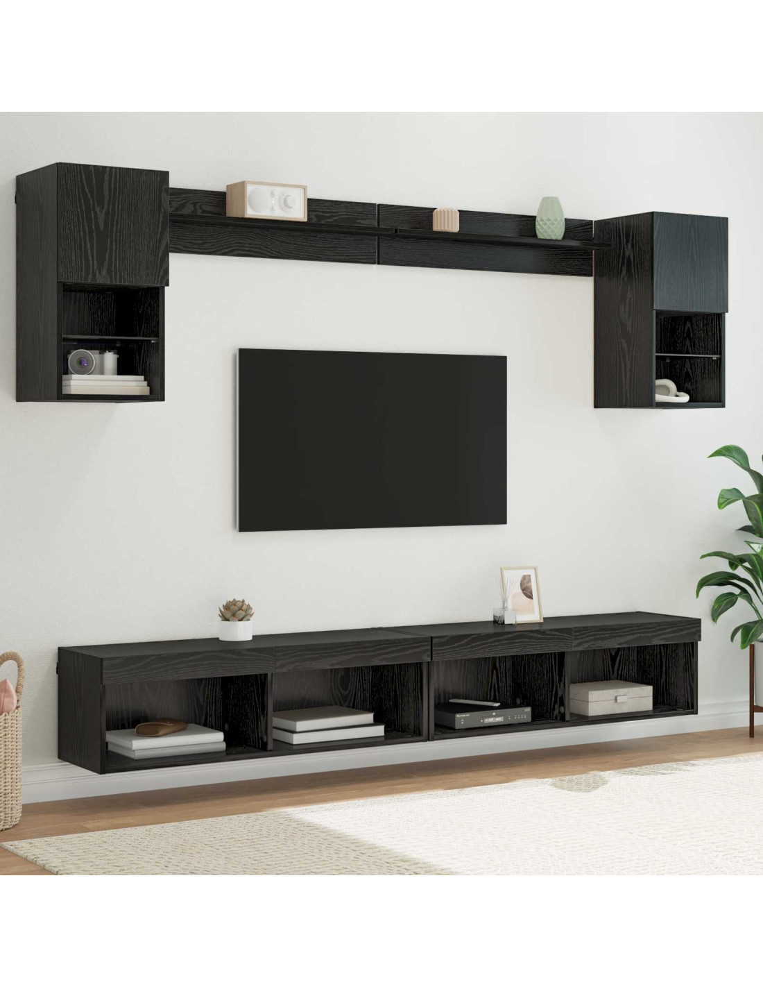 Gli armadi da parete per TV con LED sono il connubio perfetto tra utilità e stile per il tuo soggiorno. Progettati per montare a parete, questi pezzi ti aiutano a sfruttare al meglio lo spazio e offrono soluzioni di stoccaggio a misura per ambienti moderni e minimalisti. Con forme rettangolari e costruzione in legno ingegnerizzato, le linee geometriche e la lavorazione finita benissimo conferiscono un'eleganza contemporanea a ogni stanza. Le luci LED multicolori, invece, danno un'atmosfera invitante.