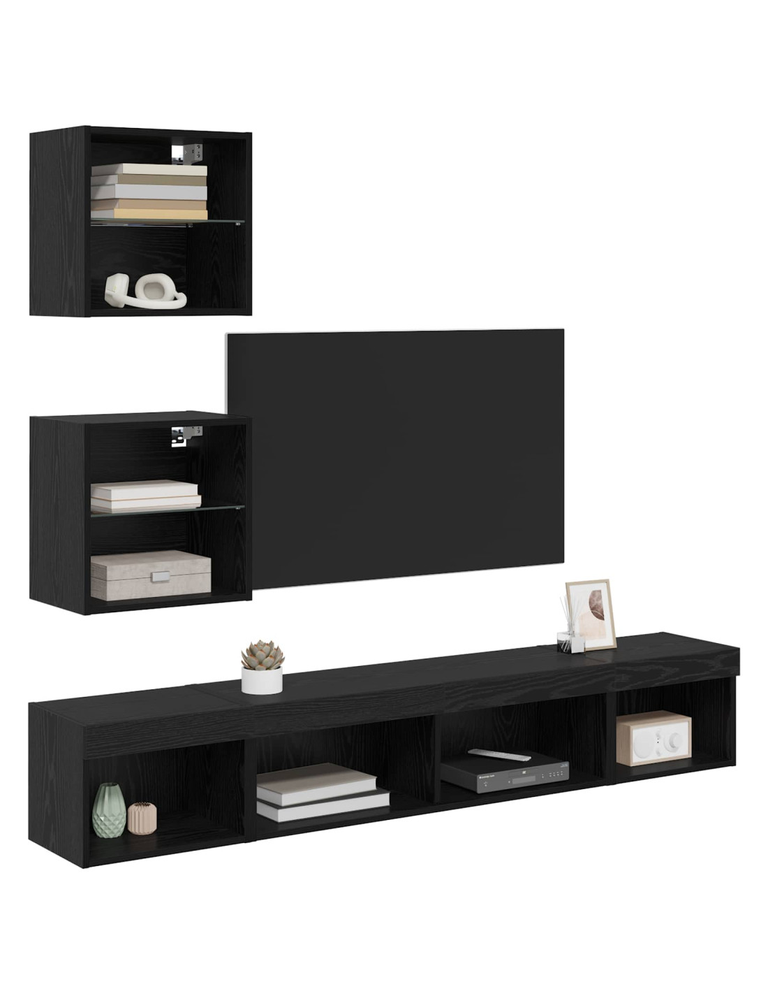 - Ripiani in vetro per esposizione Con eleganti ripiani in vetro, è perfetto per mostrare decorazioni o riporre dispositivi tecnologici, mescolando stile e praticità.