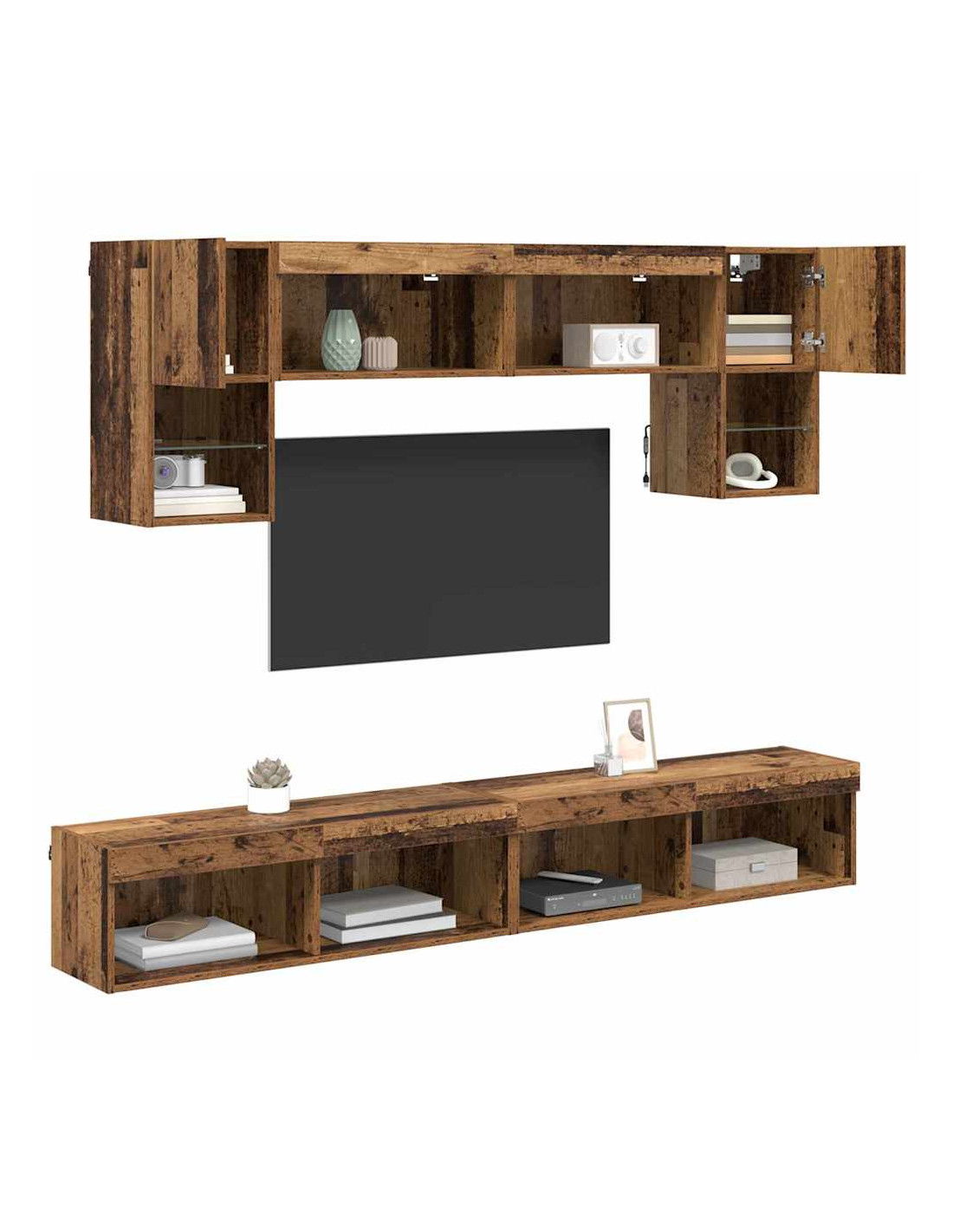 - Unità di stoccaggio ampie: L'unità TV da parete offre vari scompartimenti di diverse dimensioni, perfetti per dispositivi multimediali, libri e oggetti decorativi. La disposizione mantiene la stanza ordinata e organizzata, migliorando la qualità della tua casa.