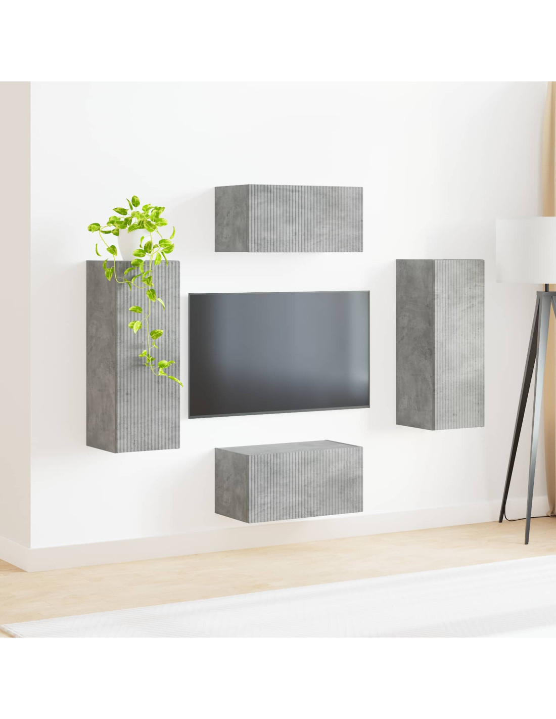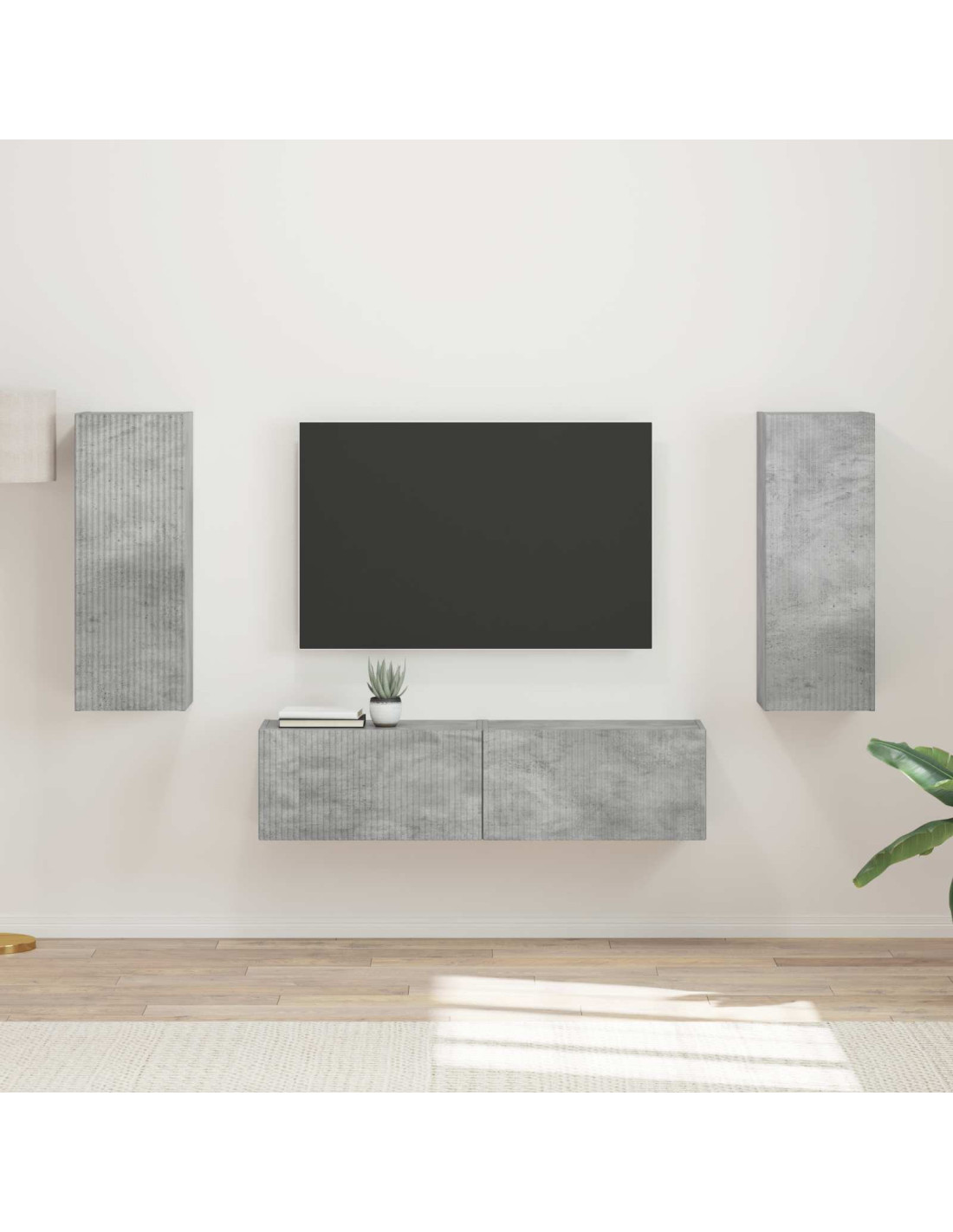 Questo set di mobili TV dà una marcia in più a ogni soggiorno, rendendolo più elegante e in ordine. Con un look semplice e funzionale, il design minimalista si sposa perfettamente con stili attuali. È pensato per esporre e mettere in ordine i dispositivi elettronici, mantenendo il pavimento bello e pulito sotto, aumentando la sensazione di spazio nella stanza.