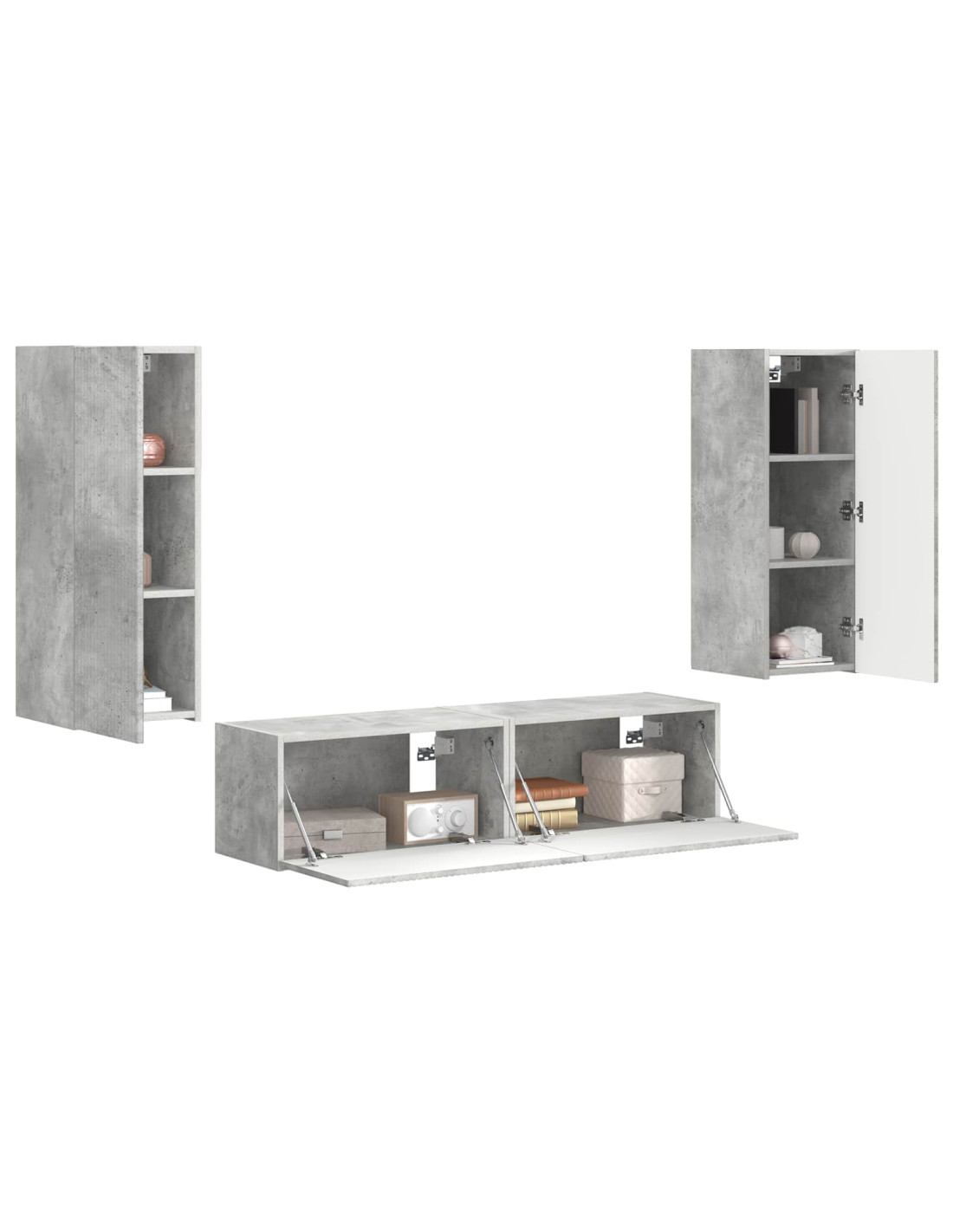 - Componenti Inclusi: Dentro ci sono due armadi a parete distinti. L'armadio grande è 60 x 31 x 29.5 cm, con tanto spazio per dispositivi multimediali o decorazioni, mentre l'armadio più piccolo misura 30 x 31 x 80 cm, offrendo flessibilità nel posizionamento. Entrambi hanno superfici lisce per un look ordinato.