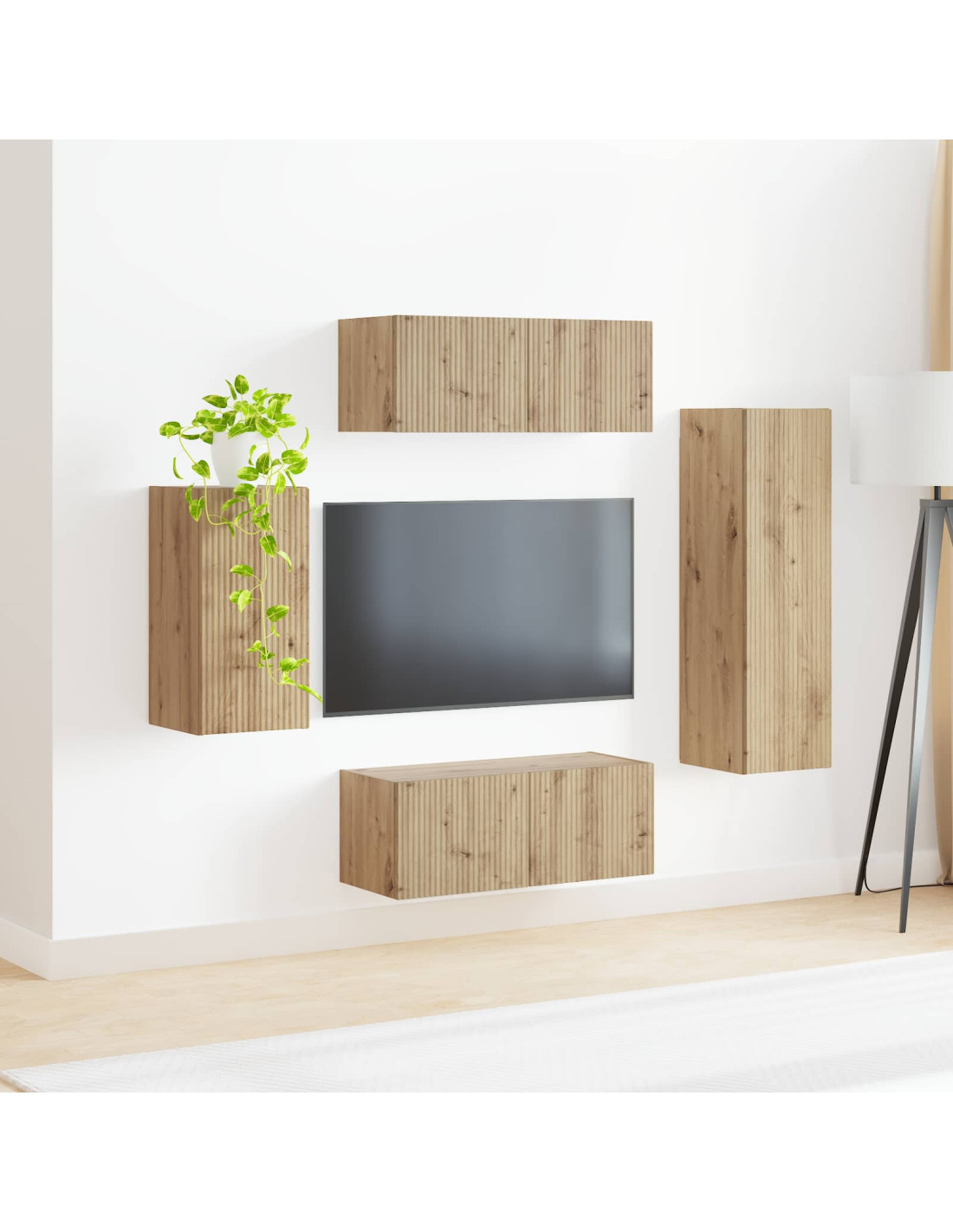 Questo set di mobili TV moderni ha un design elegante e minimalista, con linee pulite e funzionalità al centro, rendendolo perfetto per spazi abitativi contemporanei. Comprende tre armadietti a parete, offrendo tanto spazio per riporre oggetti senza risultare ingombrante. Costruito in legno ingegnerizzato, è resistente e migliora l'estetica del tuo soggiorno, creando un ambiente coeso e moderno.