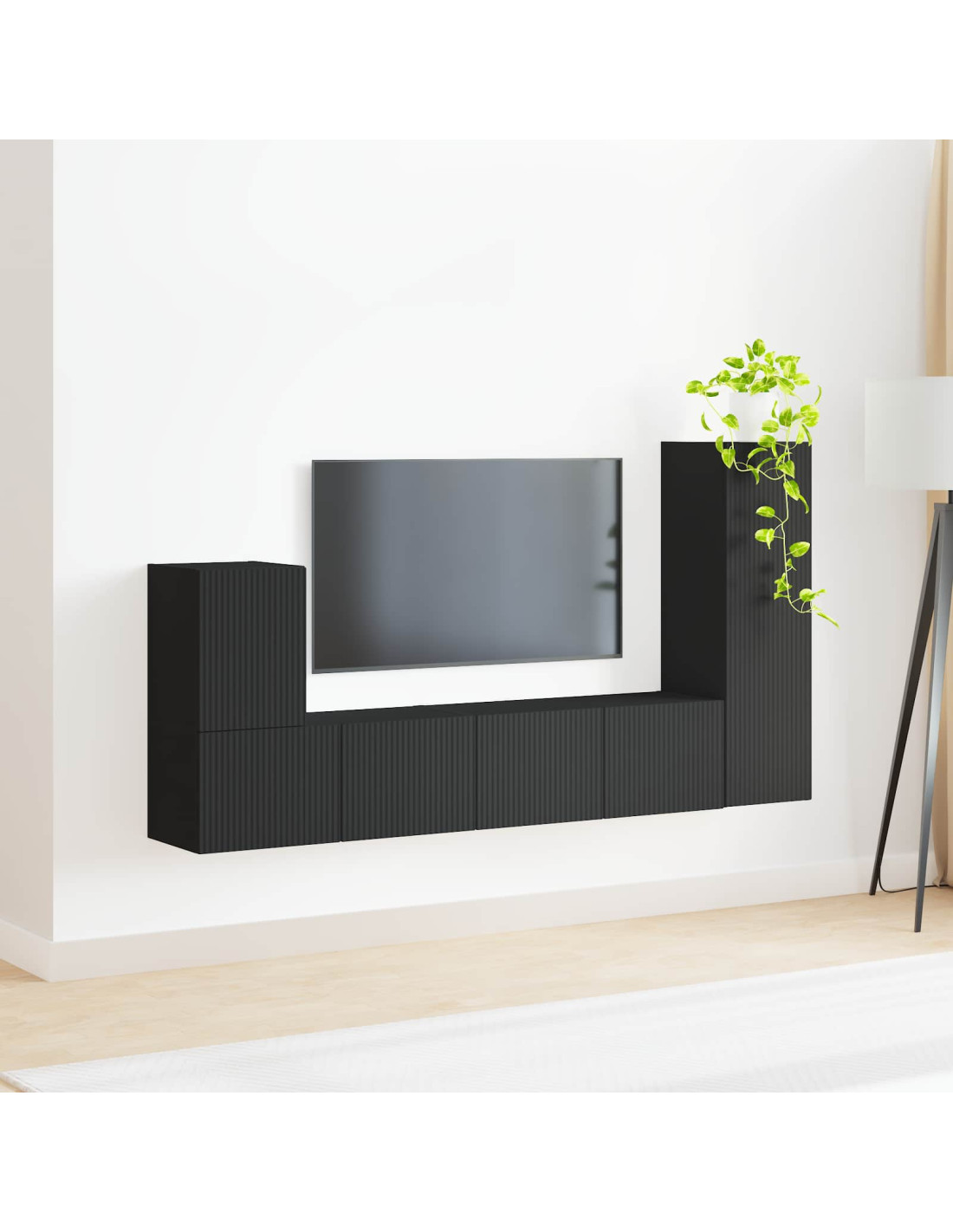 - Costruzione: Realizzato in legno ingegnerizzato, questo set di mobili TV è robusto e stabile. È resistente all'usura quotidiana, combinando resistenza con una finitura elegante, per una bellezza duratura. La scelta di questo materiale evidenzia anche sostenibilità e design intelligente.