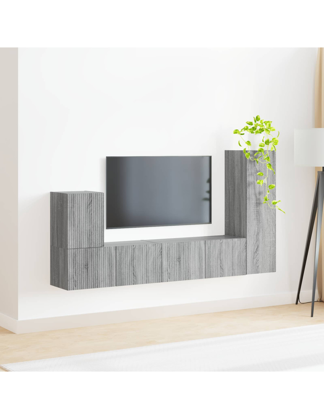 - Componenti inclusi: Include vari armadietti a parete, con fissaggi pre-forati per un montaggio facile. Le porte e i ripiani in legno ingegnerizzato offrono versatilità per riporre elettronica, DVD o oggetti decorativi. Ogni pezzo è progettato per unire estetica e funzionalità.