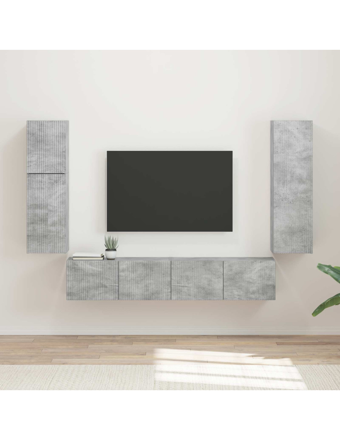 Questo set di mobili TV moderni è l'aggiunta perfetta per ogni soggiorno, con le sue linee pulite e stilose. Progettato per massimizzare funzionalità e stile, trasformerà il tuo spazio in un rifugio ordinato. È in legno ingegnerizzato, quindi è resistente ma leggero. Comprende armadietti a muro di diverse dimensioni, così puoi sfruttare al meglio il tuo spazio e mantenere tutto in ordine. Ideale per chi ama sia il design che la praticità, questo set si integra perfettamente in interni moderni.
