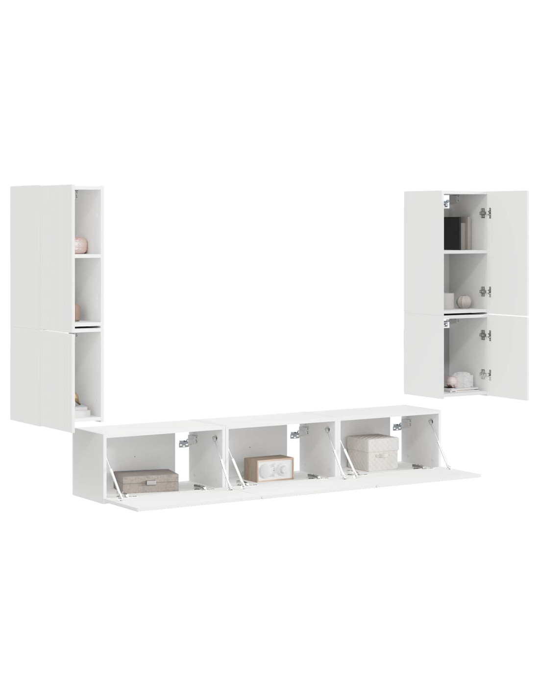 - Varietà strutturale: Il set offre mobili di diverse dimensioni per rispondere a specifiche esigenze di stoccaggio. Possono contenere console multimediali o oggetti personali, aumentando versatilità e utilità.