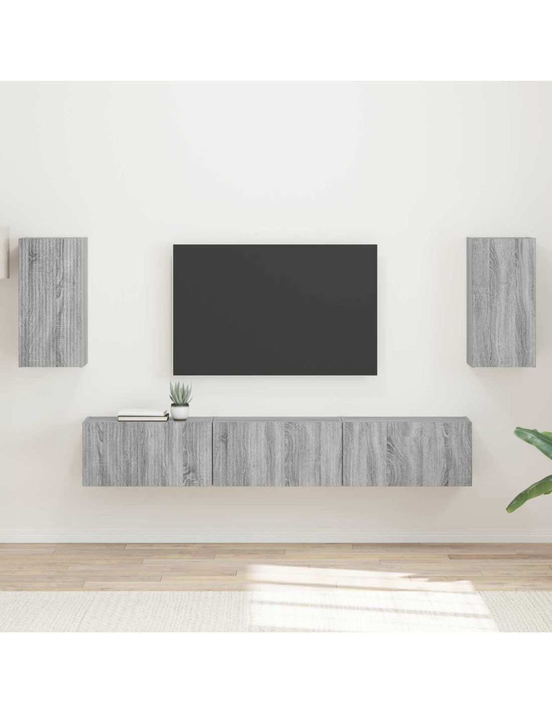 - Spaziosa soluzione di archiviazione Il set comprende due armadietti a muro e tre armadietti TV, offrendo tanto spazio per tenere in ordine elettronica, DVD, console di gioco e altro. Ogni pezzo ha interni ampi per contenere vari articoli, rendendolo perfetto per un soggiorno ordinato.
