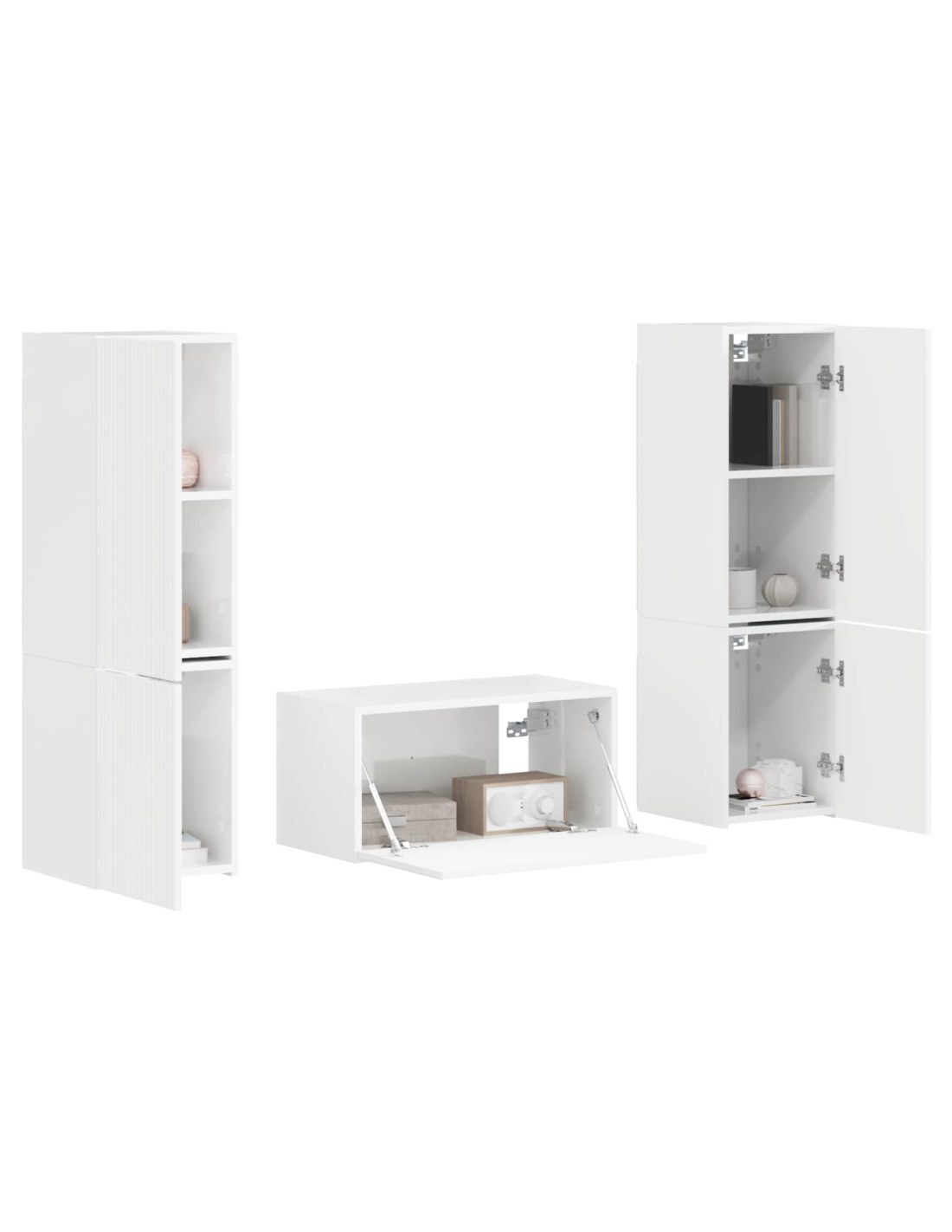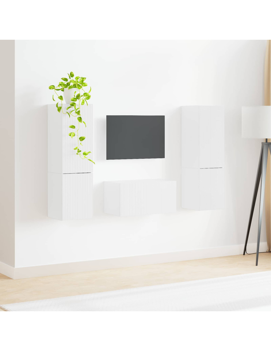 Questo fantastico centro di intrattenimento mixa stile e funzionalità, ed è l'aggiunta perfetta a qualunque spazio moderno. Con linee pulite e slanciate, porta un tocco di classe a soggiorni, sale famigliari o home office. È l'ideale per mostrare la tua TV e decorazioni per la casa, e il suo fascino contemporaneo si combina alla grande con vari stili d'interno.
