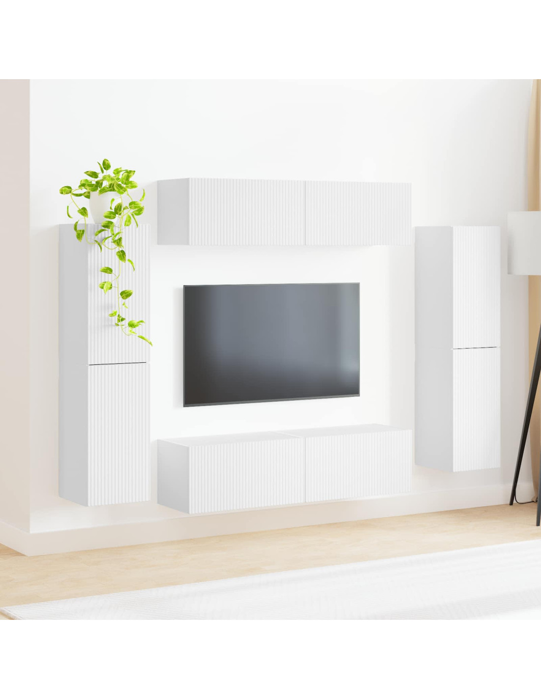 Questo set di mobili è la soluzione ideale per il tuo centro di intrattenimento. Si adatta perfettamente a ogni area living, sia in un appartamento piccolo che in un grande soggiorno. Il design elegante si abbina facilmente a vari stili di arredo, sia fondendosi con i mobili esistenti che spiccando come pezzo moderno. Ottimo per TV, libri e decorazioni, crea un ambiente accogliente per serate in famiglia o relax.