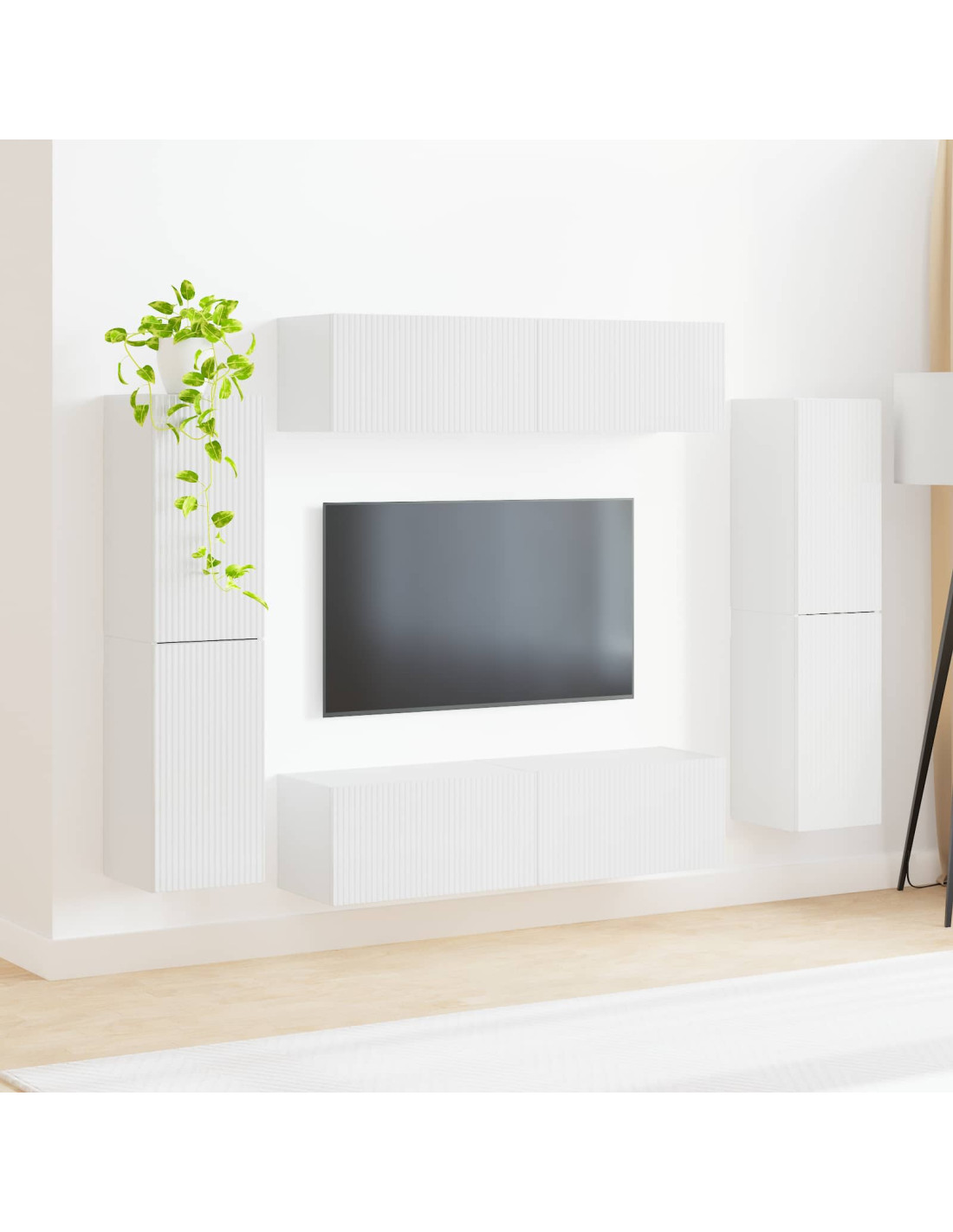 Set mobile TV 8 pcs Bianco Lucido Legno multistrato