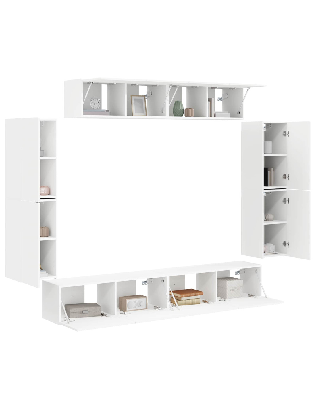 - Spazio di stoccaggio generoso Con quattro ampi scomparti e due più piccoli, questo mobile offre tanto spazio per mettere media, elettronica o oggetti decorativi. Le porte aiutano a mantenere un aspetto ordinato, riducendo il disordine e assicurando che tutto sia sempre a portata di mano. Un design che promuove un ambiente pulito, essenziale per la tranquillità domestica.