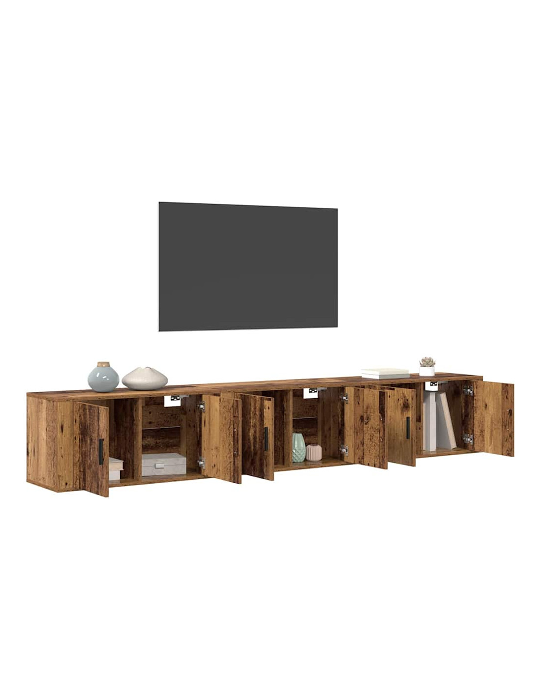 - Legno ingegnerizzato: Questo mobile è realizzato in legno ingegnerizzato, noto per la sua solidità e per la superficie liscia, il che ti aiuta a mantenere tutto in ordine. Il materiale usato per mensole, porte e telaio assicura durata e uno stile uniforme. La costruzione robusta si sposa bene con il design minimalista, rendendolo un oggetto di arredamento utile per il soggiorno.