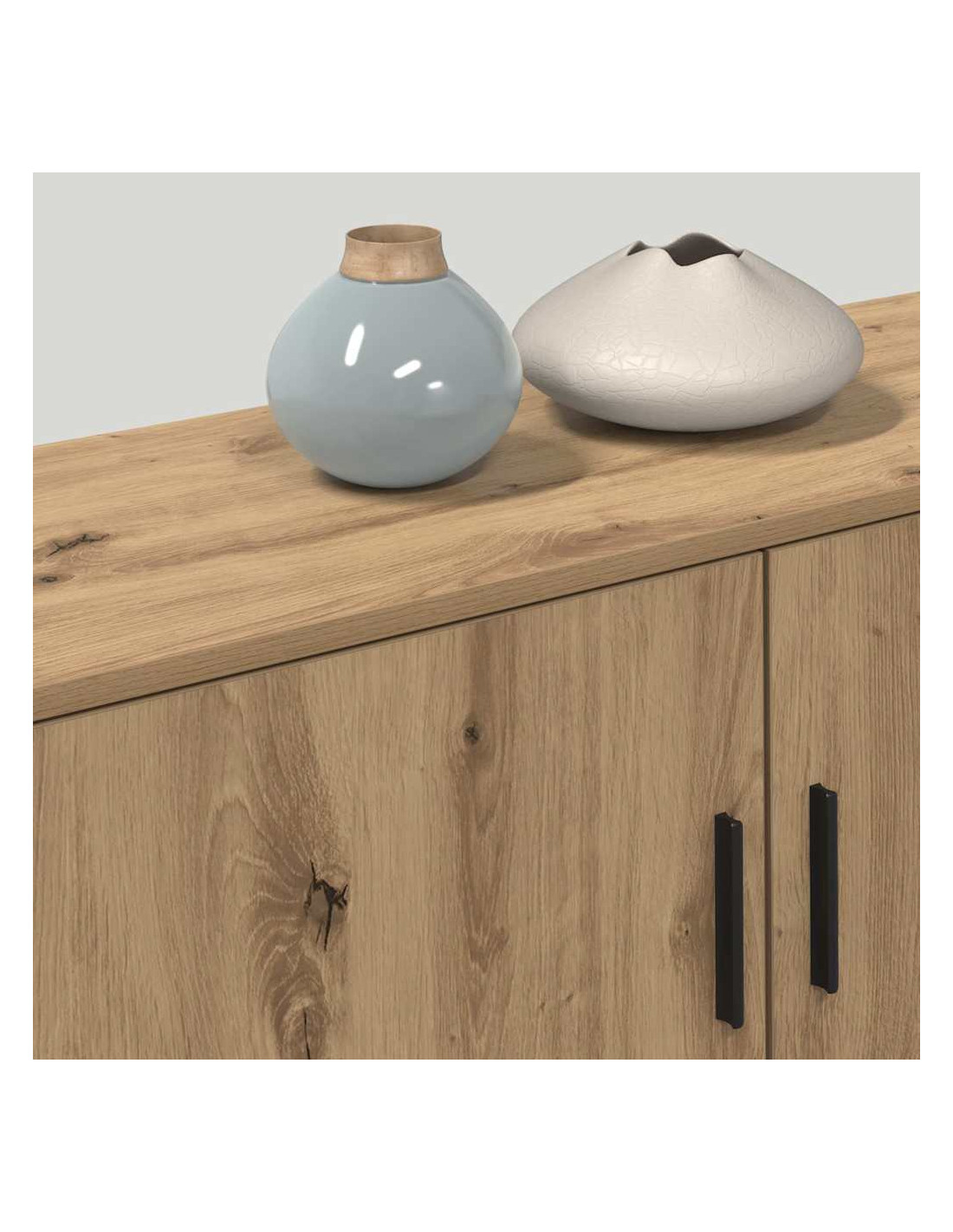- Legno ingegnerizzato: Questo mobile è realizzato in legno ingegnerizzato, noto per la sua solidità e per la superficie liscia, il che ti aiuta a mantenere tutto in ordine. Il materiale usato per mensole, porte e telaio assicura durata e uno stile uniforme. La costruzione robusta si sposa bene con il design minimalista, rendendolo un oggetto di arredamento utile per il soggiorno.