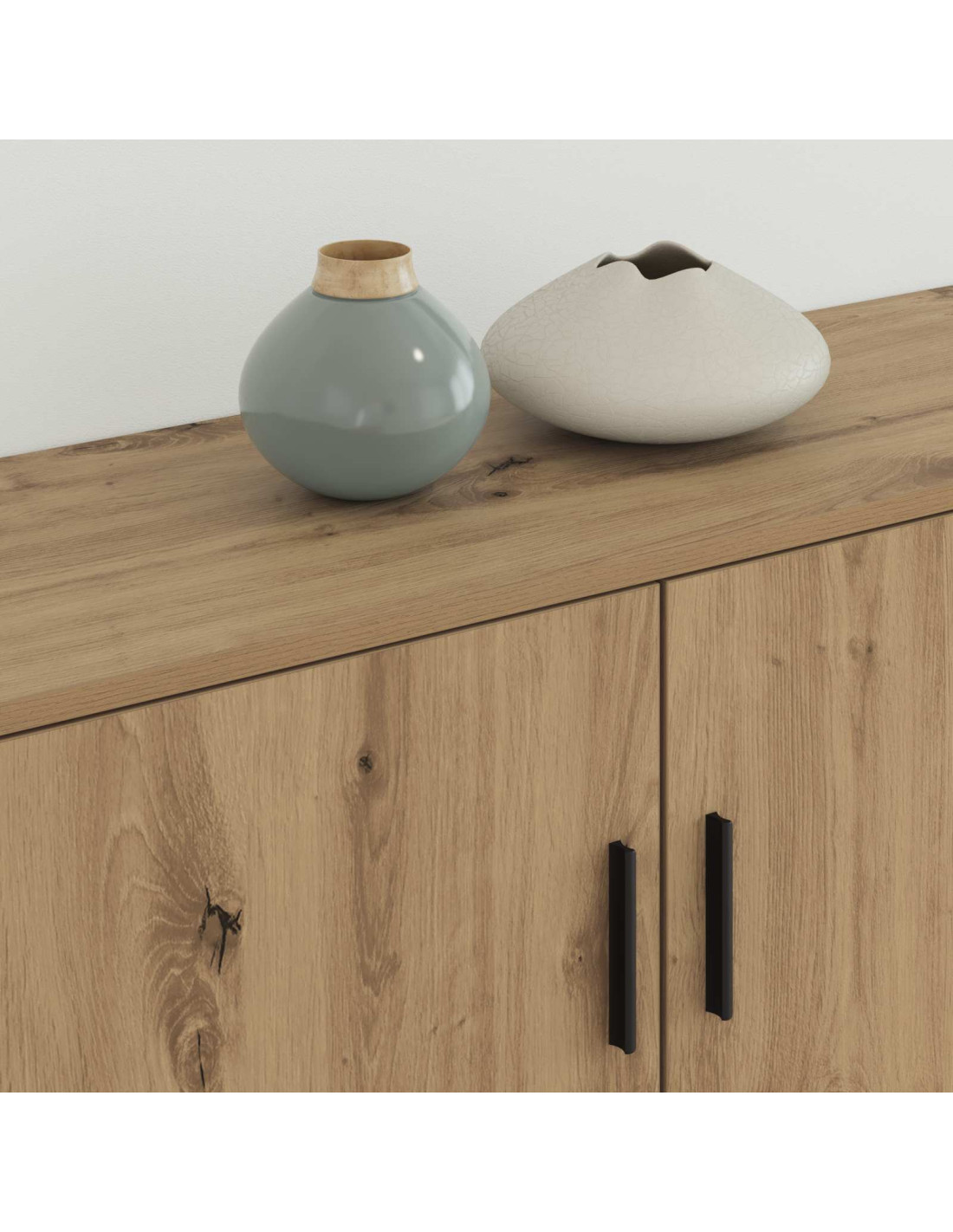 • Legno ingegnerizzato: Questo mobile è realizzato in legno ingegnerizzato, noto per la sua solidità e per la superficie liscia, il che ti aiuta a mantenere tutto in ordine. Il materiale usato per mensole, porte e telaio assicura durata e uno stile uniforme. La costruzione robusta si sposa bene con il design minimalista, rendendolo un oggetto di arredamento utile per il soggiorno.