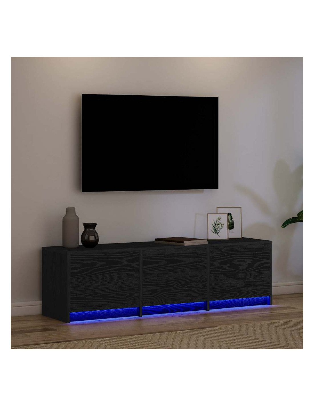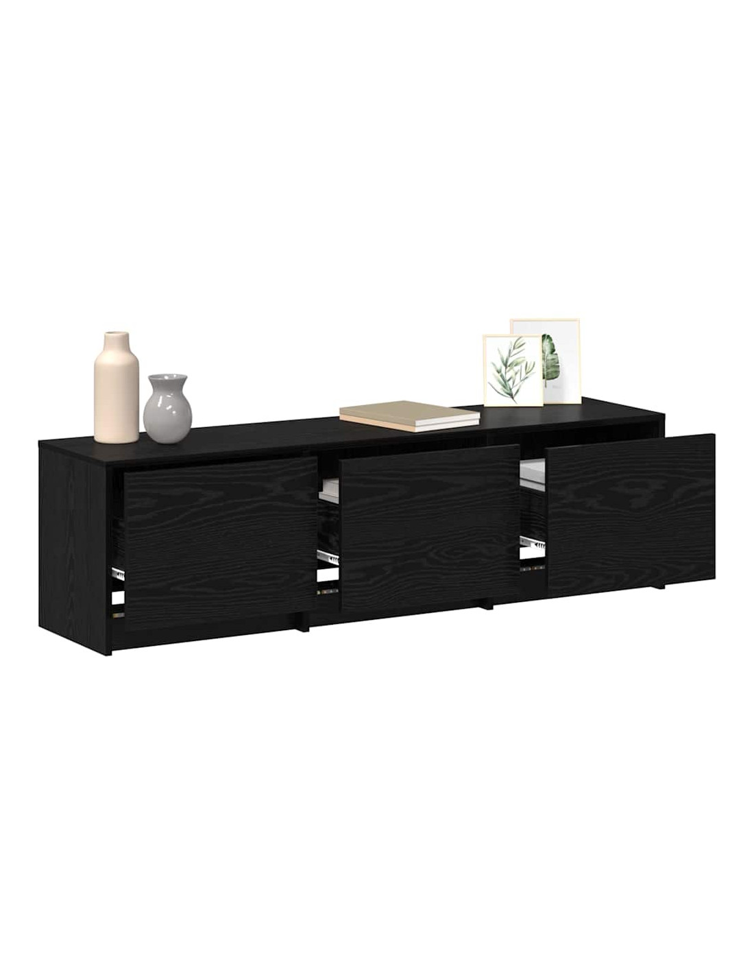 Mobile TV con LED con cassetto Rovere Nero 140 x 34 x 40 cm