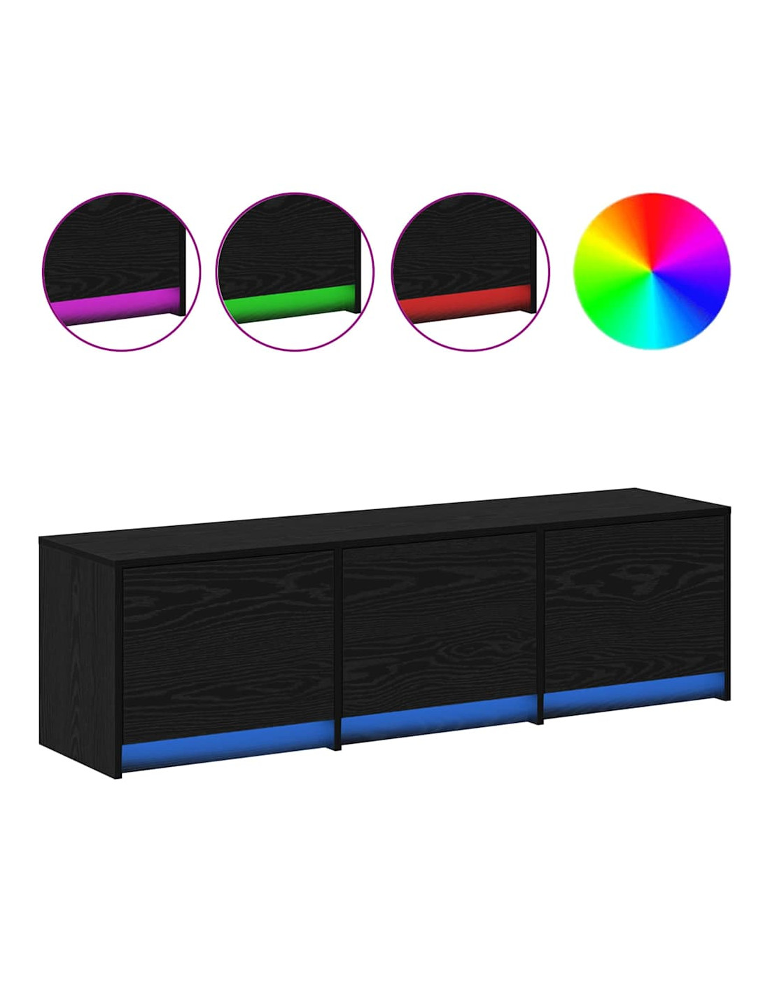 - Illuminazione LED integrata: Con luci multicolore integrate, il mobile crea giochi di luce che migliorano l'atmosfera del tuo spazio. Grazie a un semplice interruttore, puoi regolare i colori per ogni occasione, personalizzando l'illuminazione.
