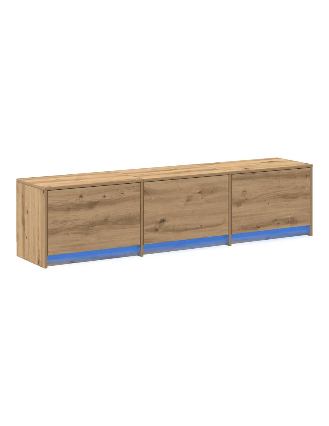 - Illuminazione LED integrata: Con luci multicolore integrate, il mobile crea giochi di luce che migliorano l'atmosfera del tuo spazio. Grazie a un semplice interruttore, puoi regolare i colori per ogni occasione, personalizzando l'illuminazione.