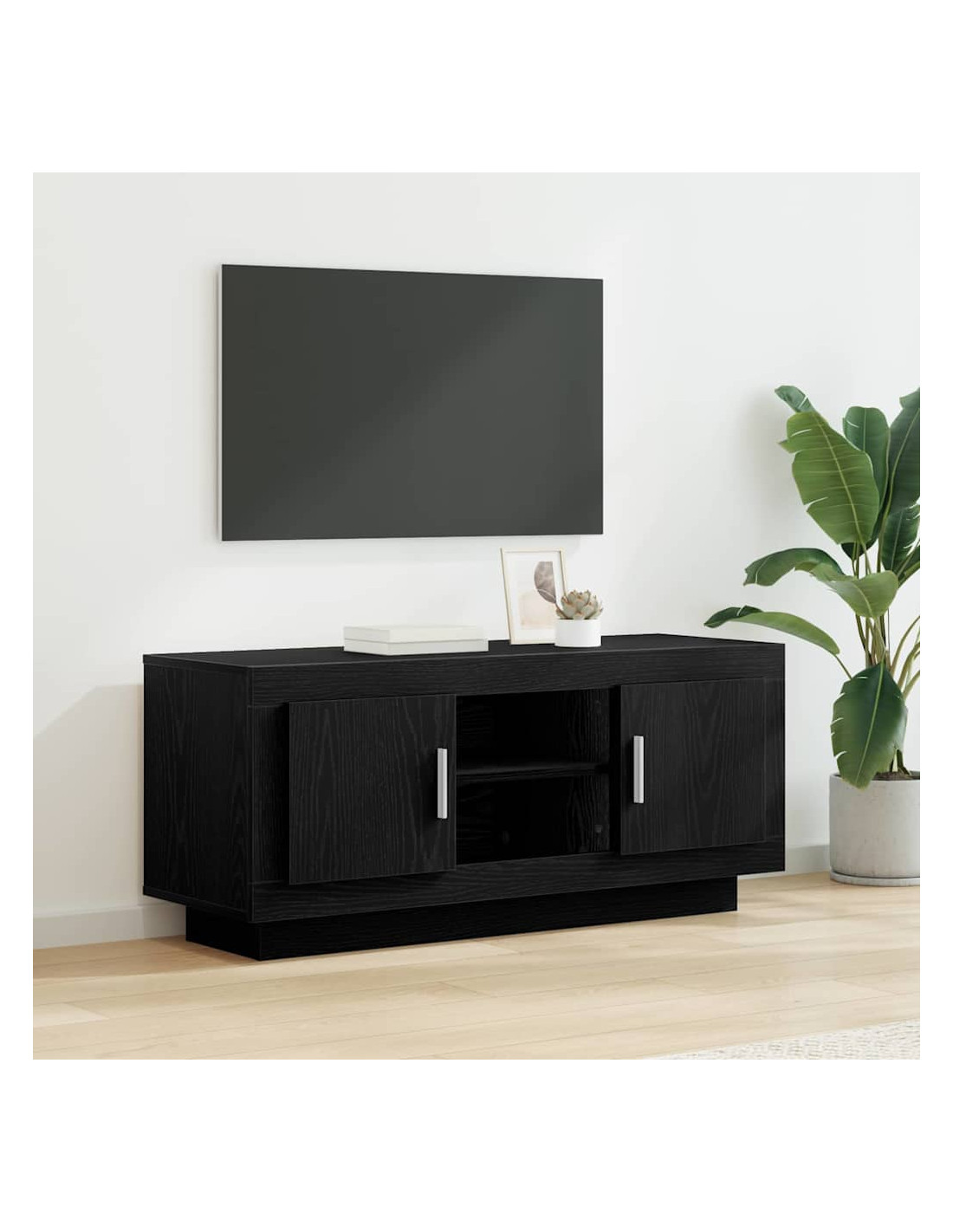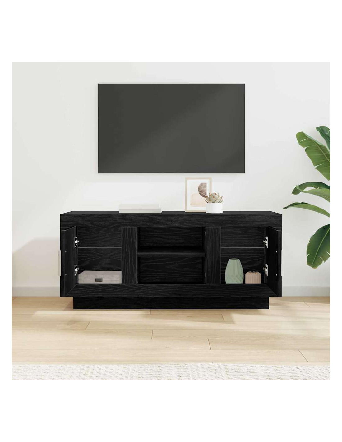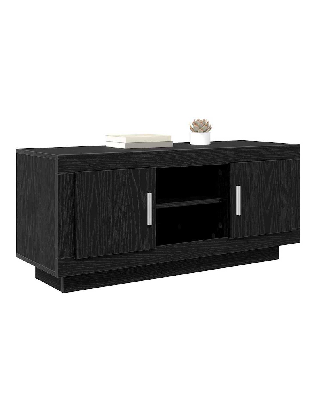 - Materiali: Questo mobile TV è fatto principalmente di legno ingegnerizzato, progettato per essere resistente e duraturo. È scelto per la sua uniformità, offrendo un aspetto coerente anche con l'uso quotidiano.