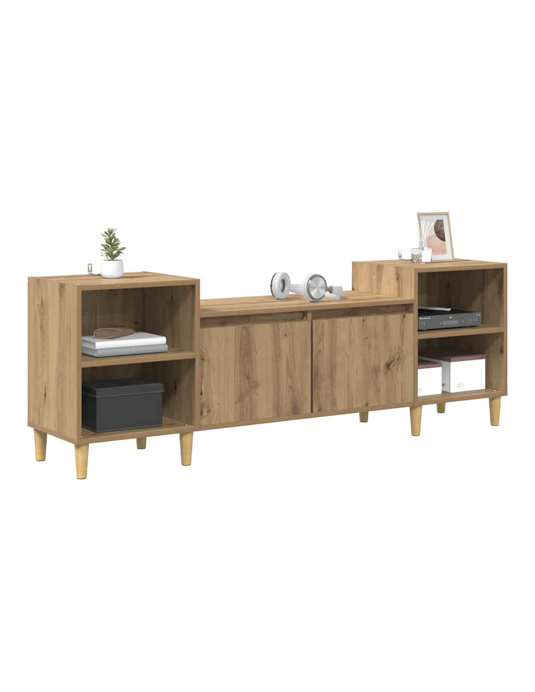 - Componenti inclusi: Con ripiani in legno, il mobile offre un'organizzazione efficiente per dispositivi, decorazioni e altro. Le porte a cerniera facilitano l'accesso, mantenendo tutto ben ordinato. Le gambe affusolate aggiungono un tocco moderno e migliorano la stabilità. Ogni componente è pensato per combinare funzionalità e design alla moda.