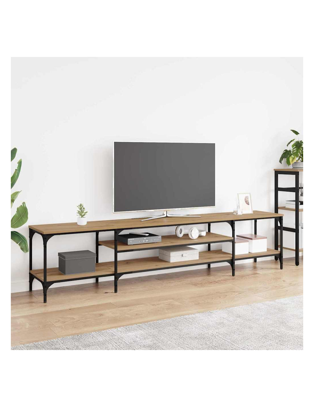 - Caratteristiche /Funzione /Design: Questo mobile offre tanto spazio per tutte le tue attrezzature multimediali. Le mensole in legno tengono tutto in ordine e a portata di mano. La combinazione di materiali lo rende pratico e ideale per spazi disordinati.