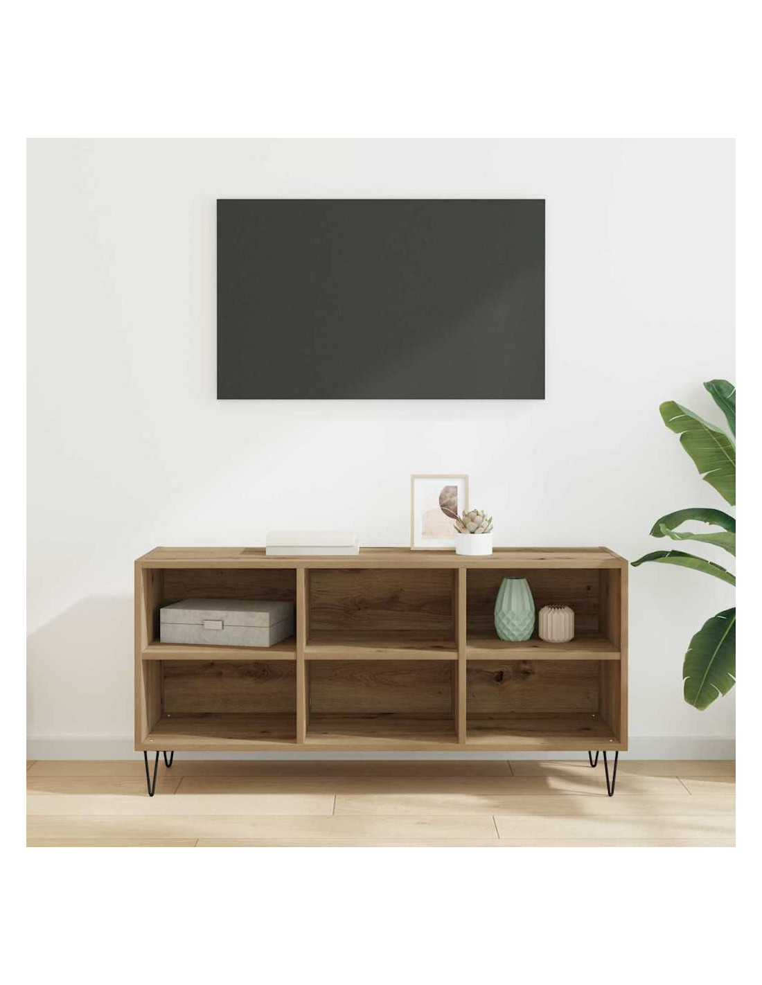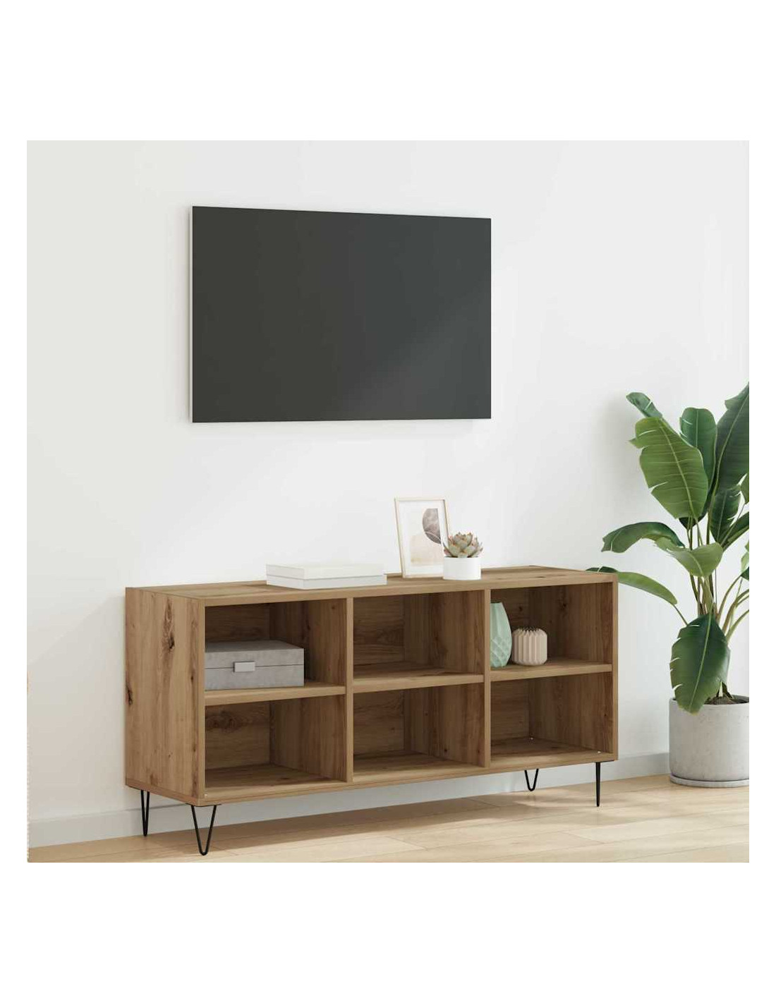 - Costruzione in legno ingegnerizzato Questo mobile TV è fatto con legno ingegnerizzato di alta qualità, garantendo robustezza. La finitura resistente all'abrasione lo protegge dall'usura quotidiana. Questo materiale aggiunge calore ed eleganza al tuo ambiente.