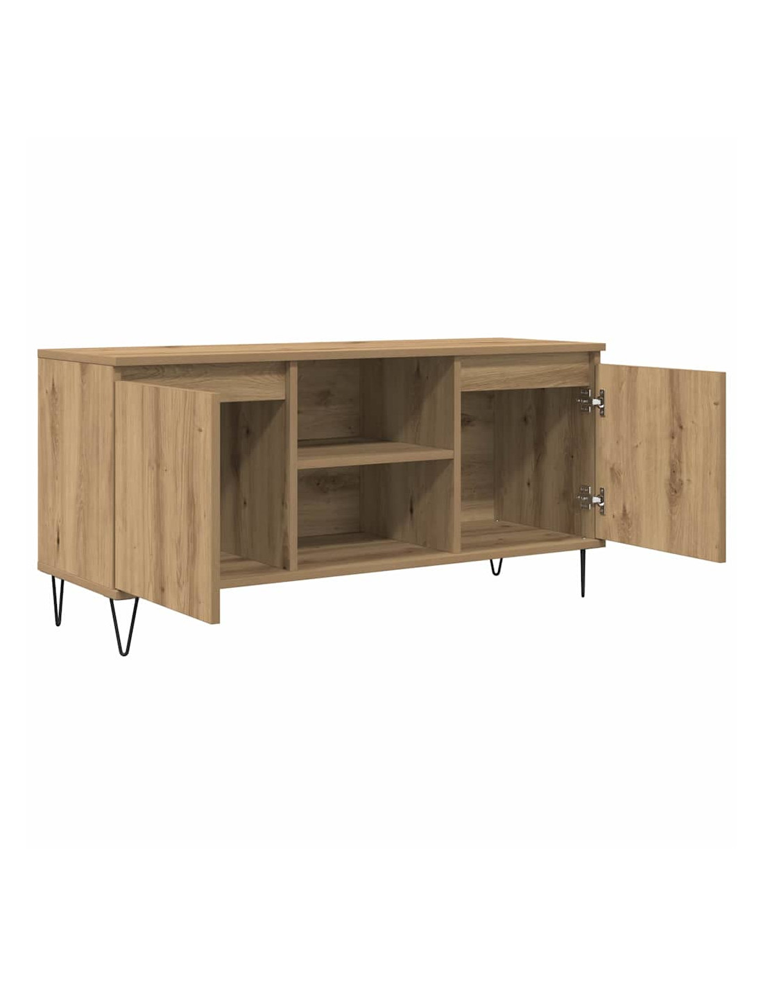 Il mobile TV di Entertainment Centres è pensato per migliorare il look e l’utilità del tuo soggiorno, offrendo una soluzione di stoccaggio moderna con linee pulite. Questo mobile è semplice e versatile nel design, ed è un’ottima aggiunta a qualsiasi interno contemporaneo. La sua forma rettangolare e snella consente di integrarlo facilmente con vari stili di arredamento e fornisce un piano solido per il tuo TV e altri oggetti decorativi. La combinazione di legno ingegnerizzato e ferro garantisce una costruzione robusta, rendendolo un pezzo affidabile per tutti i giorni.