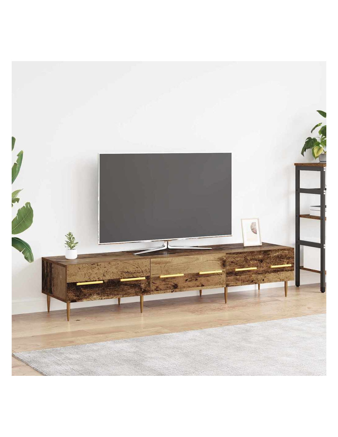 - Costruzione in legno ingegnerizzato: Questo mobile TV è fatto di legno ingegnerizzato di alta qualità, noto per la sua resistenza e durata. Questo materiale garantisce una struttura solida e mantiene un bell'aspetto nel tempo, riducendo graffi e usura. È perfetto per riporre attrezzature e oggetti decorativi.