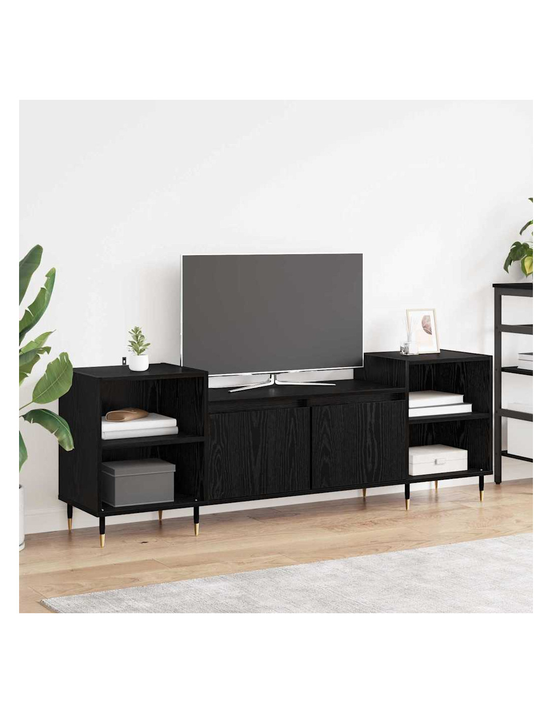 - Materiali: Realizzato in legno ingegnerizzato, questo mobile TV è pensato per durare nel tempo, con una superficie resistente all'abrasione. Questo materiale non solo aumenta la sua durata, ma contribuisce anche al suo look moderno e raffinato, rendendolo un elemento affidabile per qualsiasi spazio. Il legno ingegnerizzato è progettato per resistere all'usura quotidiana, mantenendo il suo aspetto anche con un uso intensivo.