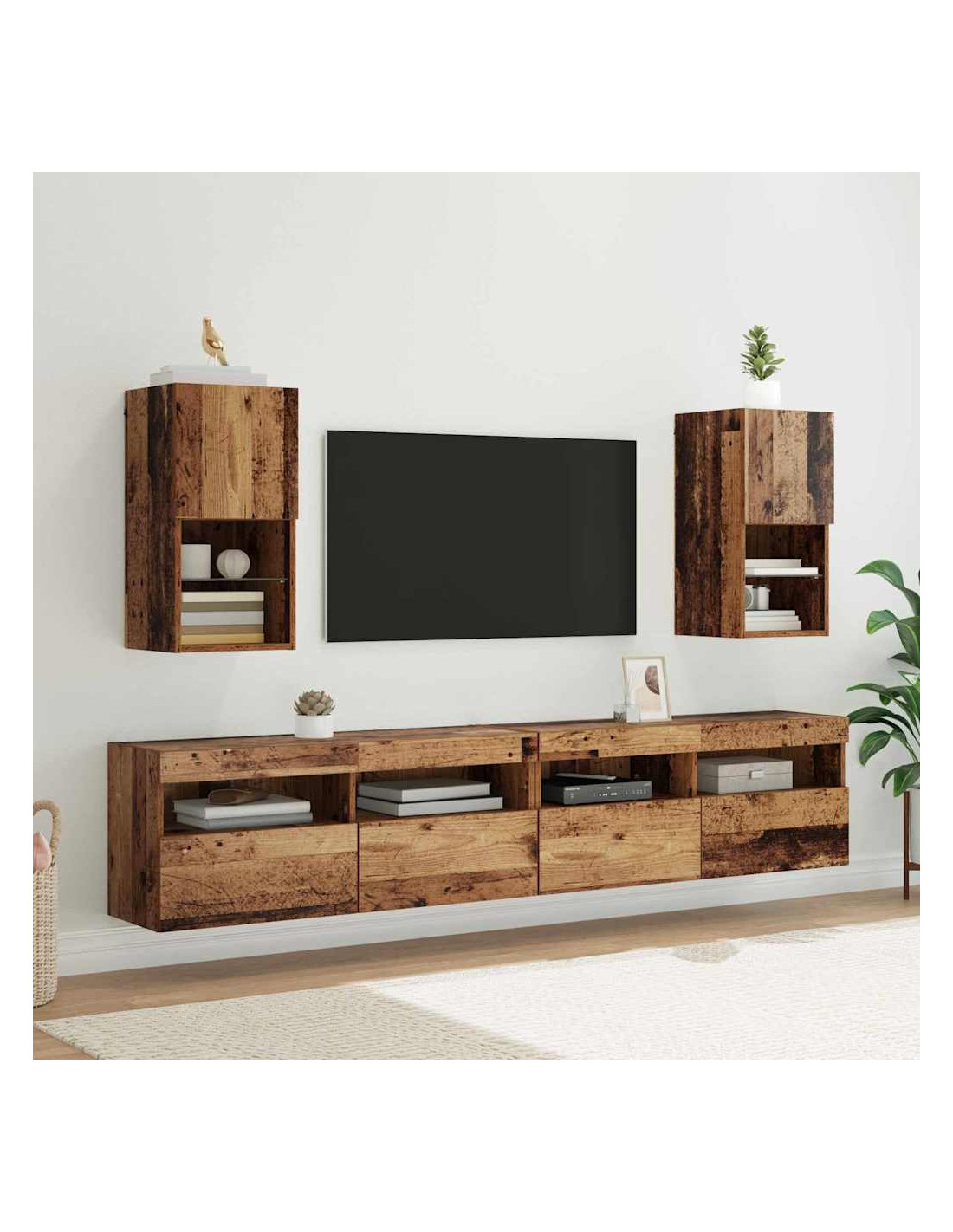 - Ripiani Pratici: Gli scaffali in legno ingegnerizzato offrono soluzioni di stoccaggio aperto. Ogni ripiano è funzionale, ospitando tutto, da dispositivi multimediali a elementi decorativi, massimizzando lo spazio senza sacrificare lo stile.