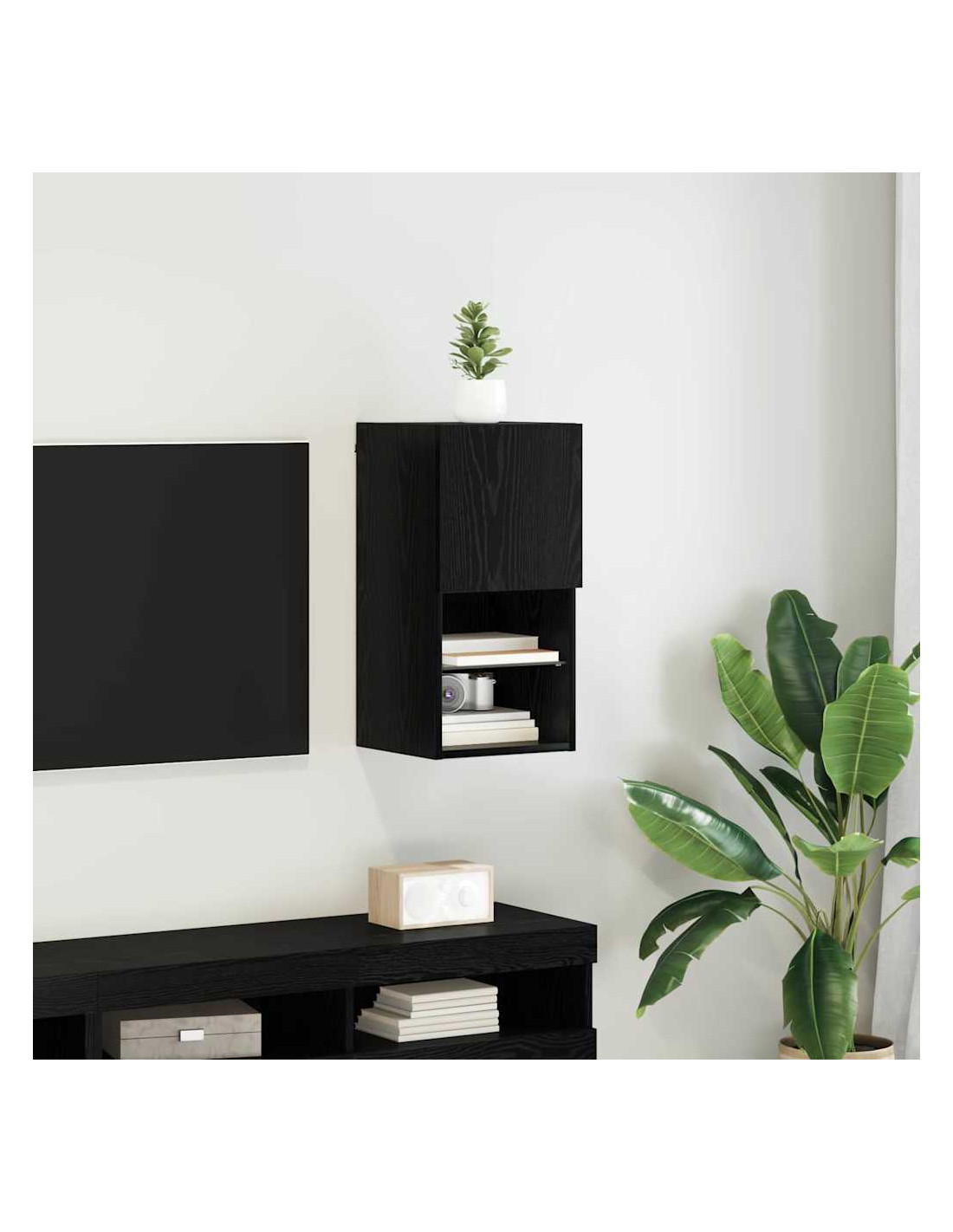 - Ripiani Pratici: Gli scaffali in legno ingegnerizzato offrono soluzioni di stoccaggio aperto. Ogni ripiano è funzionale, ospitando tutto, da dispositivi multimediali a elementi decorativi, massimizzando lo spazio senza sacrificare lo stile.