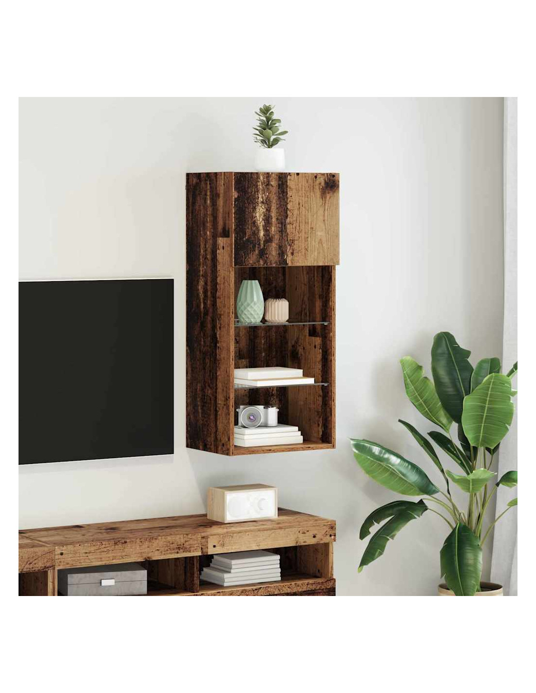 - Ripiani Pratici: Gli scaffali in legno ingegnerizzato offrono soluzioni di stoccaggio aperto. Ogni ripiano è funzionale, ospitando tutto, da dispositivi multimediali a elementi decorativi, massimizzando lo spazio senza sacrificare lo stile.