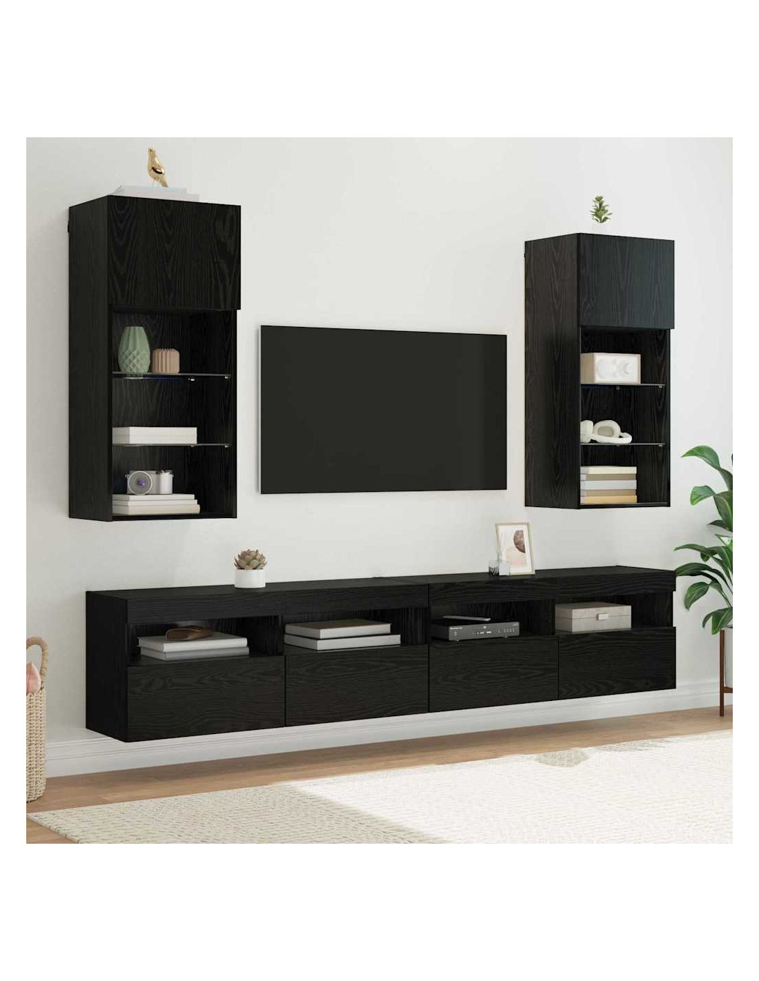 Questo Set di Armadi per TV Moderni è l'ideale per trasformare il tuo soggiorno in un ambiente elegante e pratico. Con la sua forma rettangolare e un design moderno, semplice e pulito, crea un'atmosfera armoniosa, perfetta per spazi contemporanei. Dimentica i mobili ingombranti: questo set si adatta perfettamente a qualsiasi stanza, grande o piccola, offrendo funzionalità senza rinunciare all'estetica. Che tu lo usi per esporre oggetti decorativi o per tenere tutti i tuoi dispositivi elettronici, questo mobile è una soluzione multifunzionale che arricchisce qualsiasi ambiente.