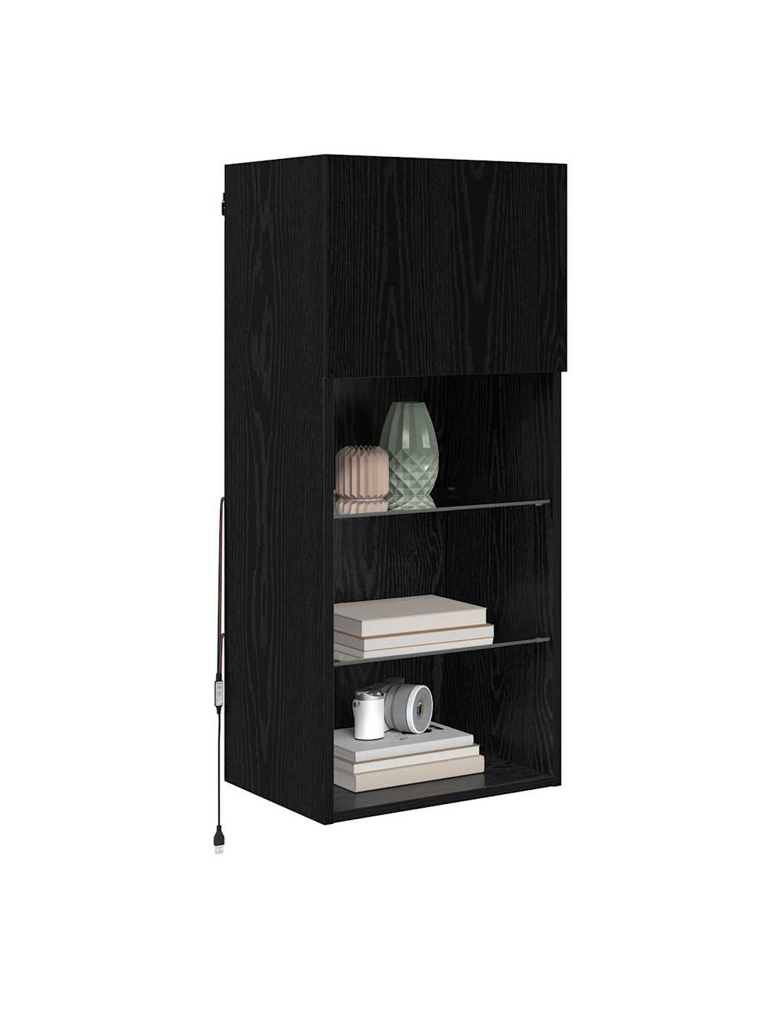 - Ripiani Pratici: Gli scaffali in legno ingegnerizzato offrono soluzioni di stoccaggio aperto. Ogni ripiano è funzionale, ospitando tutto, da dispositivi multimediali a elementi decorativi, massimizzando lo spazio senza sacrificare lo stile.
