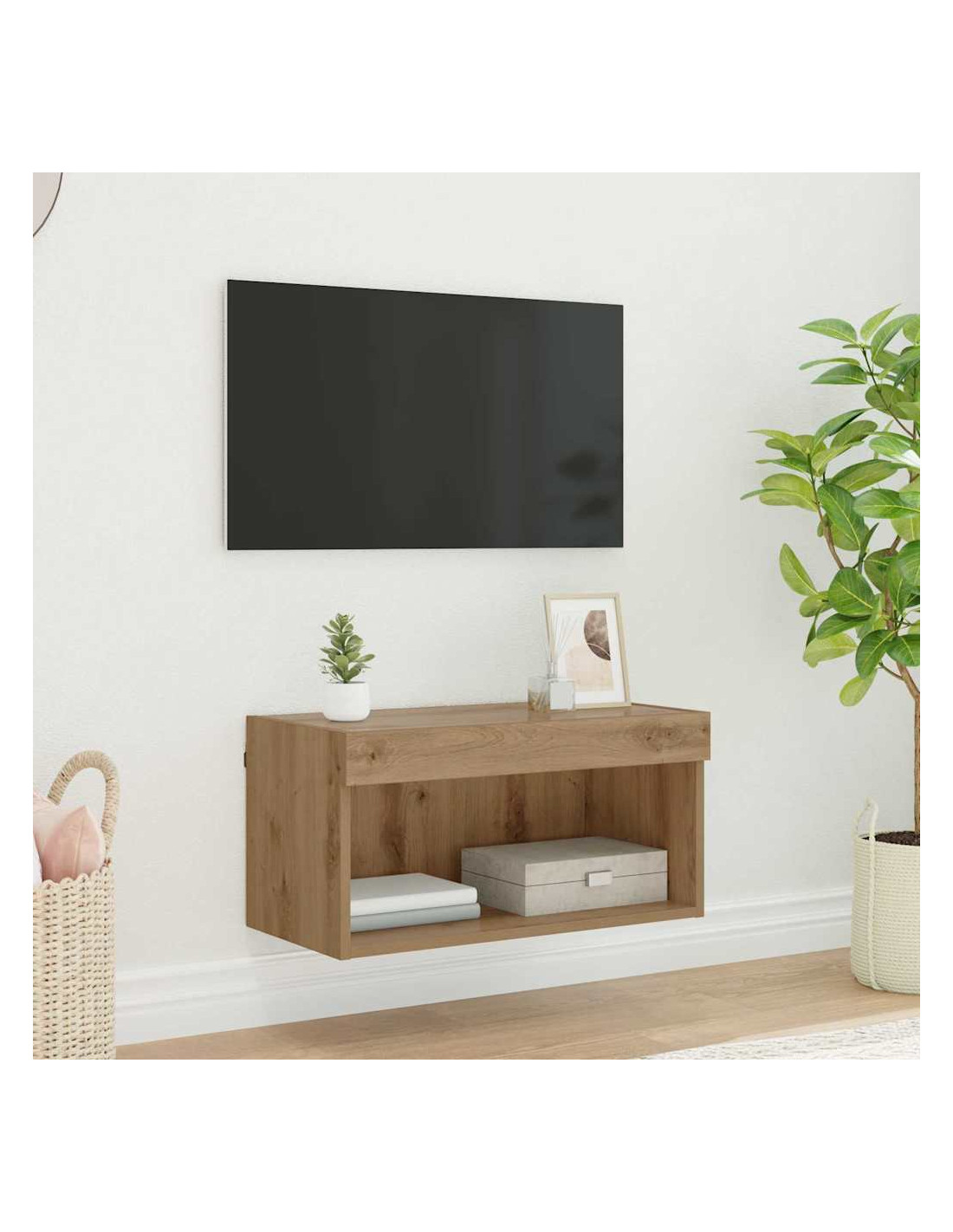 Questo set di mobile TV a LED da parete aggiunge un tocco di classe e funzionalità a qualsiasi soggiorno. Con il suo design elegante e la costruzione in legno ingegnerizzato, si inserisce perfettamente negli spazi moderni. Perfetto per chi ama unire bellezza e praticità, questo mobile TV ha un aspetto minimale e offre molto spazio per riporre e illuminare. Installato a parete, rende l'ambiente più arioso e dona un'atmosfera chic.