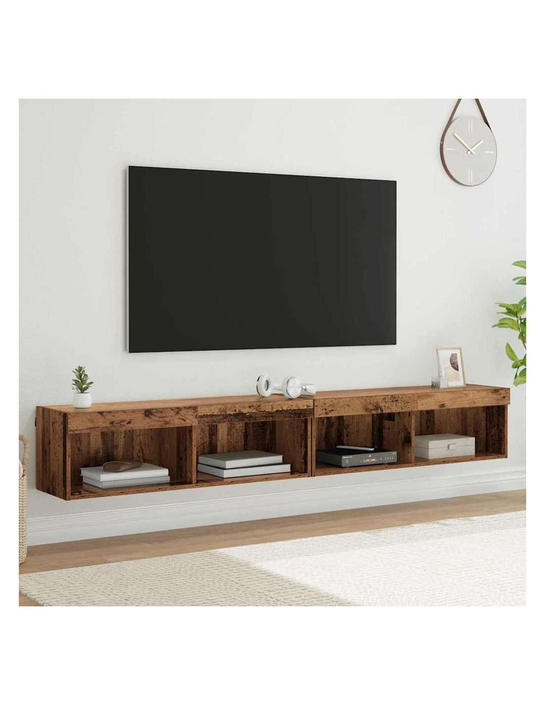 Questo set di mobile TV a LED da parete aggiunge un tocco di classe e funzionalità a qualsiasi soggiorno. Con il suo design elegante e la costruzione in legno ingegnerizzato, si inserisce perfettamente negli spazi moderni. Perfetto per chi ama unire bellezza e praticità, questo mobile TV ha un aspetto minimale e offre molto spazio per riporre e illuminare. Installato a parete, rende l'ambiente più arioso e dona un'atmosfera chic.