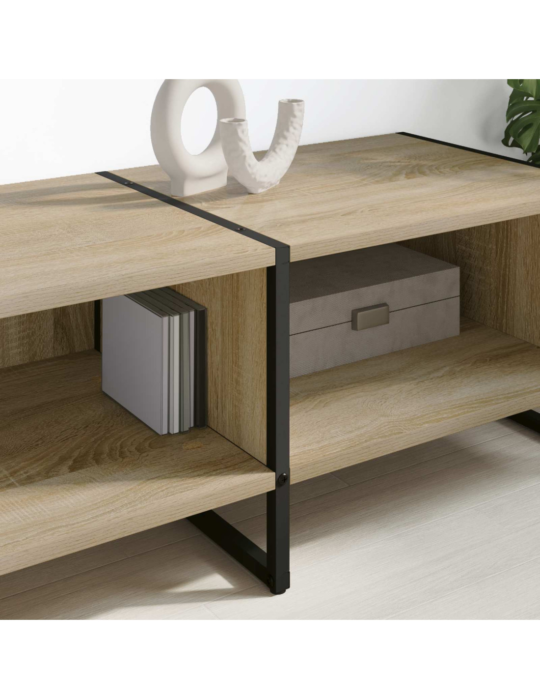 - Caratteristiche notevoli Con la sua costruzione resistente, il mobile TV affronta l'uso quotidiano senza perdere il suo fascino. Con un design semplice e rettangolare, si integra facilmente negli interni moderni, offrendo una soluzione di stoccaggio funzionale e stilosa, ideale per stili di vita urbani e spazi minimalisti.