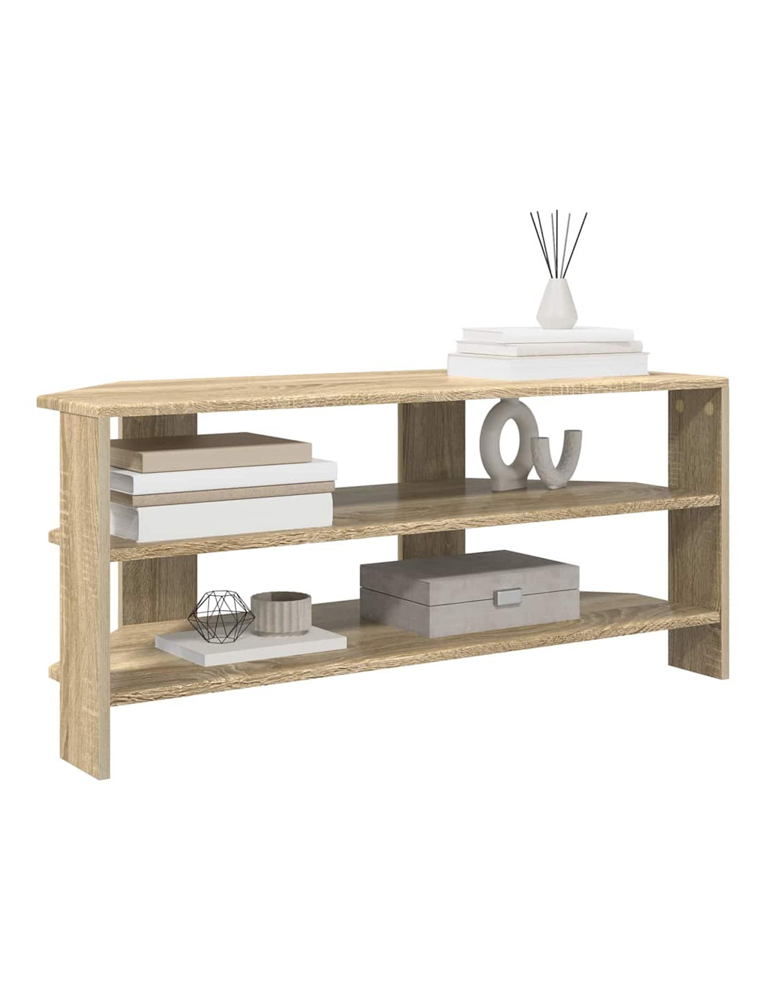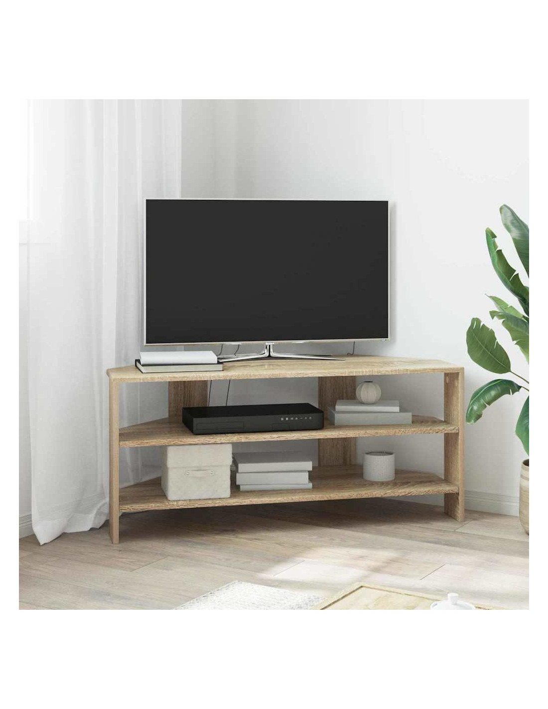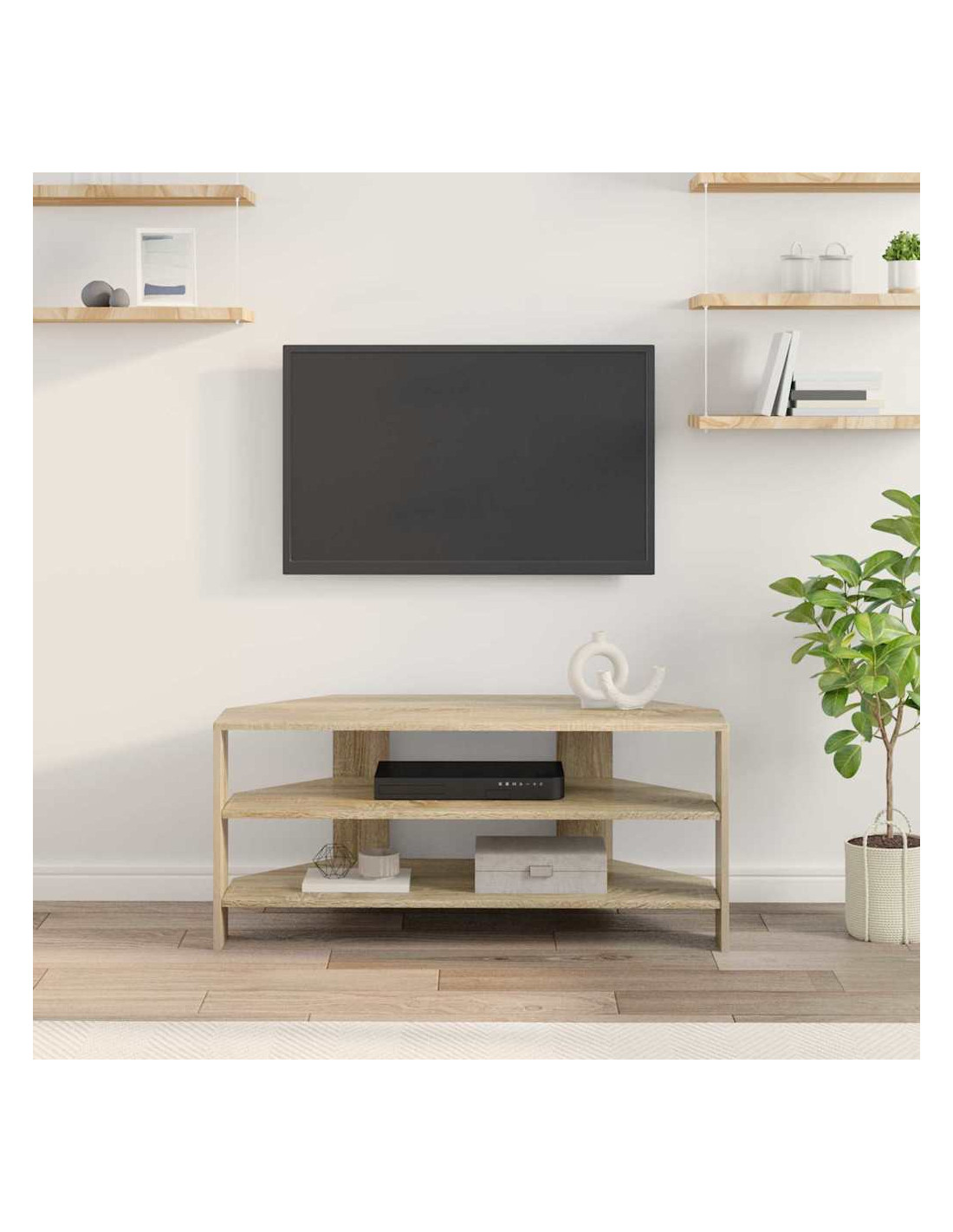 Questo mobile TV angolare moderno si inserisce perfettamente in soggiorni contemporanei, mescolando funzionalità ed estetica semplice. Il design è caratterizzato da linee pulite e pochi fronzoli, rendendolo una bella aggiunta al tuo arredamento. Offre soluzioni di stoccaggio versatili, perfette per tenere in ordine l'attrezzatura multimediale, i libri e tutto il resto, e la costruzione in legno ingegnerizzato assicura che duri a lungo, mantenendo il suo aspetto impeccabile.