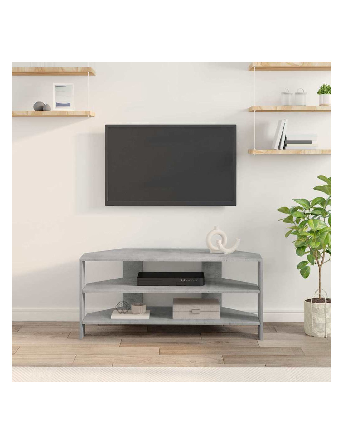Questo mobile TV angolare moderno si inserisce perfettamente in soggiorni contemporanei, mescolando funzionalità ed estetica semplice. Il design è caratterizzato da linee pulite e pochi fronzoli, rendendolo una bella aggiunta al tuo arredamento. Offre soluzioni di stoccaggio versatili, perfette per tenere in ordine l'attrezzatura multimediale, i libri e tutto il resto, e la costruzione in legno ingegnerizzato assicura che duri a lungo, mantenendo il suo aspetto impeccabile.