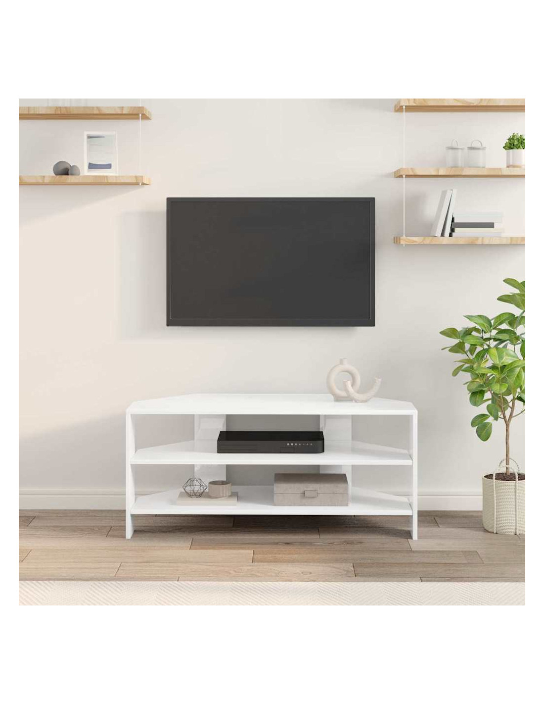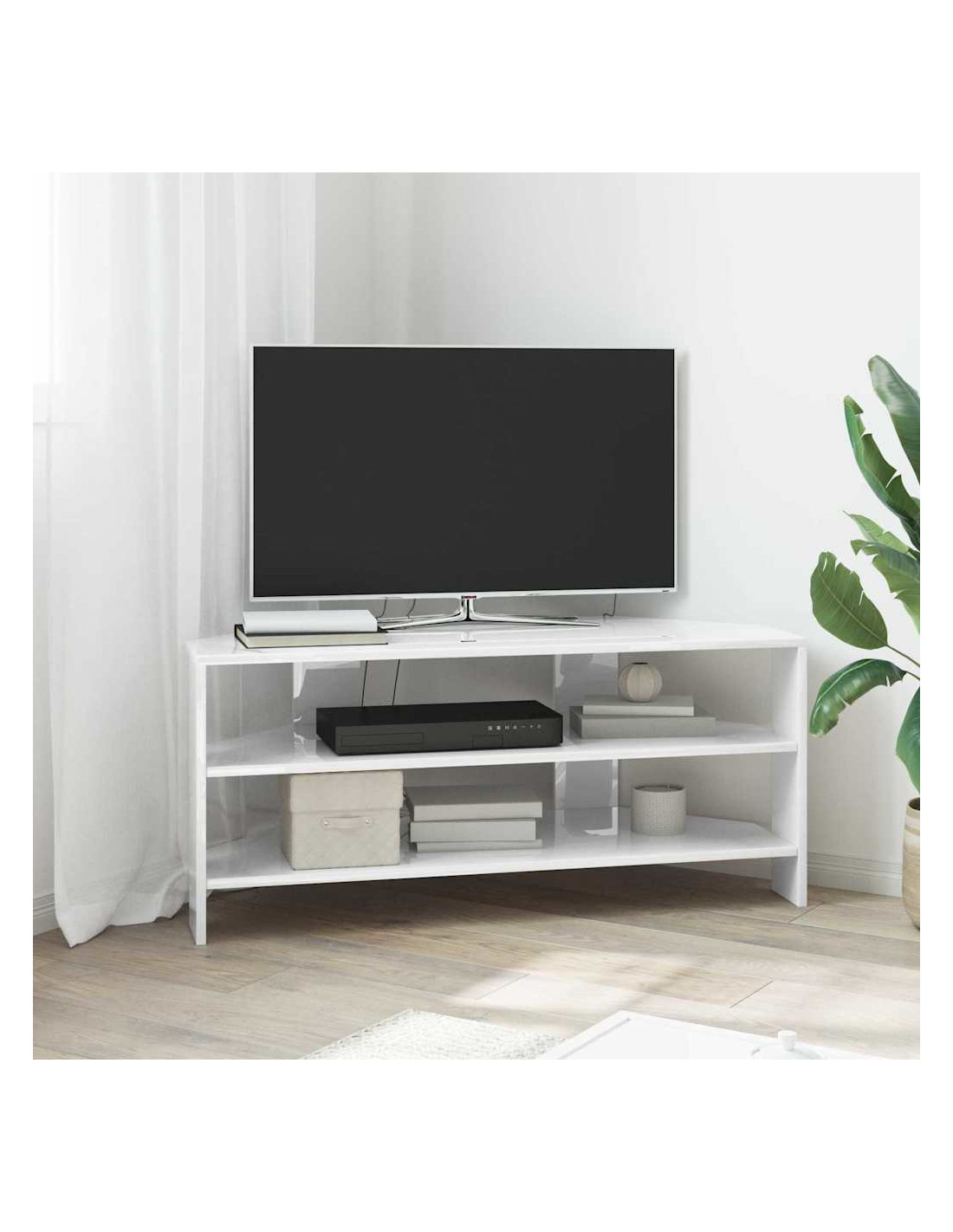 Questo mobile TV angolare moderno si inserisce perfettamente in soggiorni contemporanei, mescolando funzionalità ed estetica semplice. Il design è caratterizzato da linee pulite e pochi fronzoli, rendendolo una bella aggiunta al tuo arredamento. Offre soluzioni di stoccaggio versatili, perfette per tenere in ordine l'attrezzatura multimediale, i libri e tutto il resto, e la costruzione in legno ingegnerizzato assicura che duri a lungo, mantenendo il suo aspetto impeccabile.