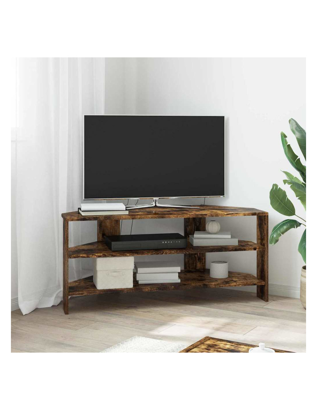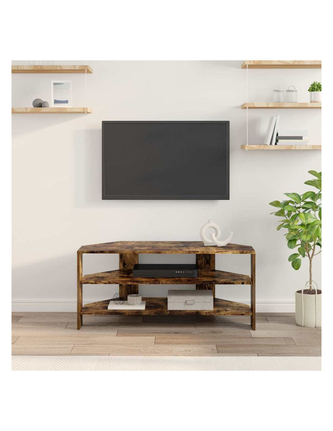 Questo mobile TV angolare moderno si inserisce perfettamente in soggiorni contemporanei, mescolando funzionalità ed estetica semplice. Il design è caratterizzato da linee pulite e pochi fronzoli, rendendolo una bella aggiunta al tuo arredamento. Offre soluzioni di stoccaggio versatili, perfette per tenere in ordine l'attrezzatura multimediale, i libri e tutto il resto, e la costruzione in legno ingegnerizzato assicura che duri a lungo, mantenendo il suo aspetto impeccabile.