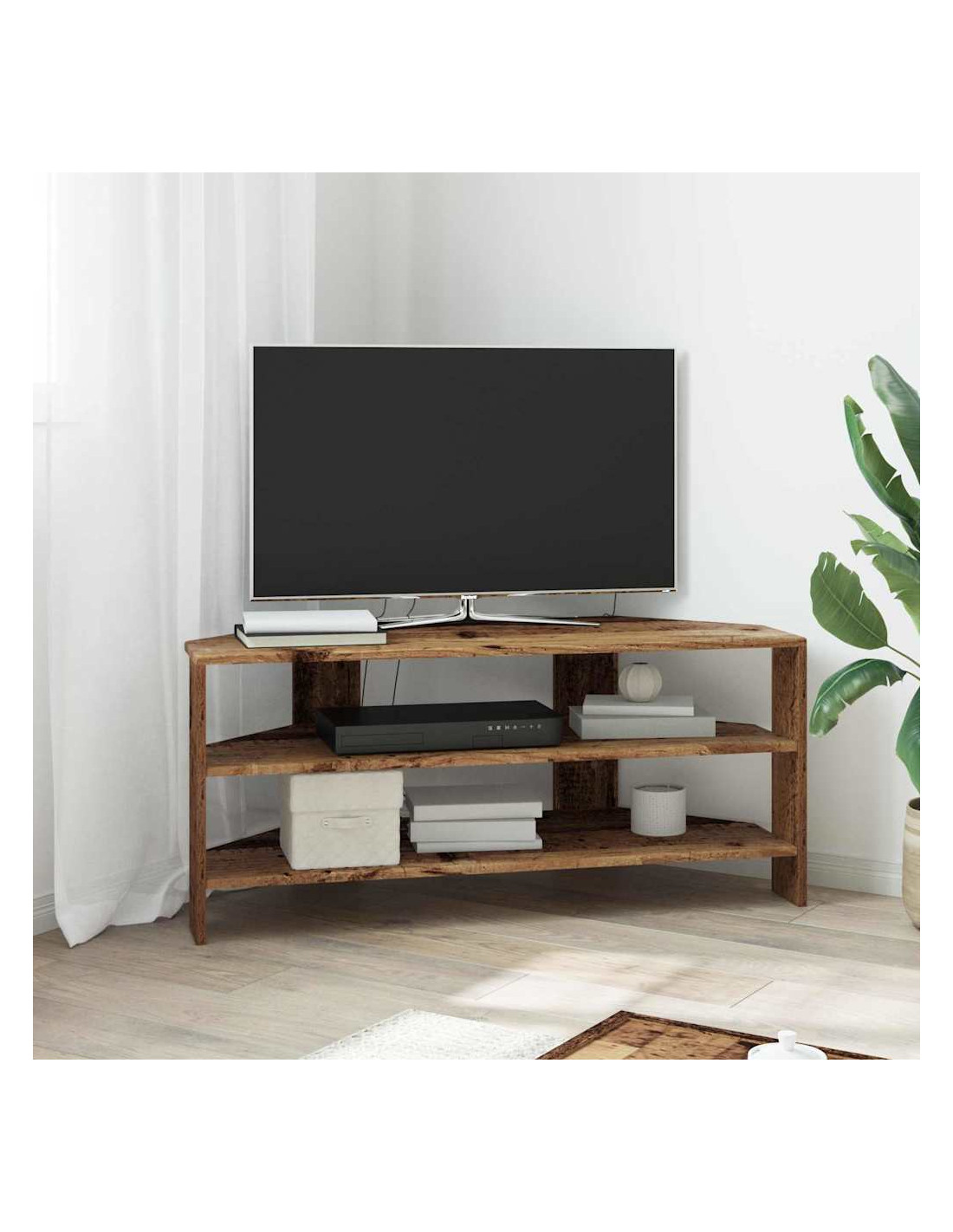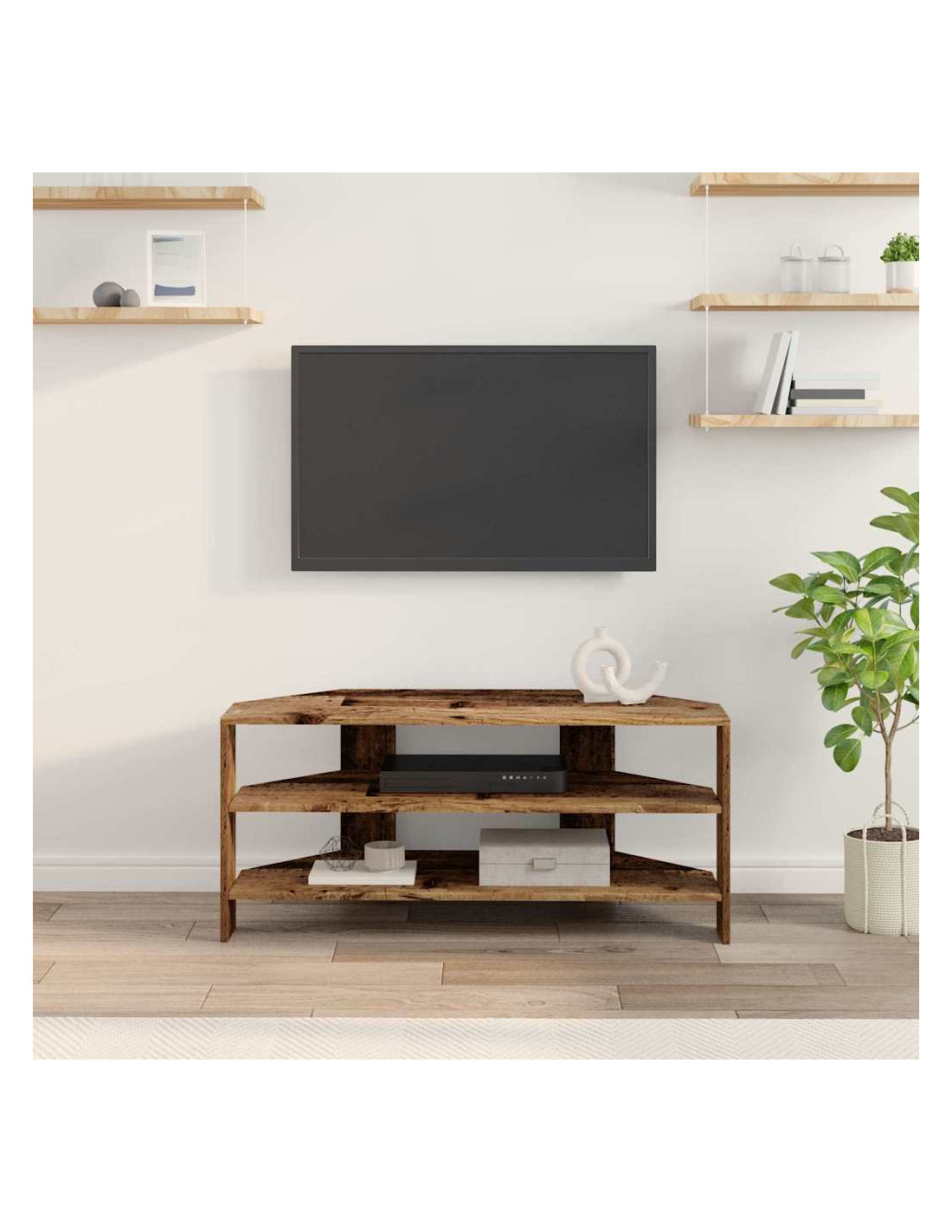 Questo mobile TV angolare moderno si inserisce perfettamente in soggiorni contemporanei, mescolando funzionalità ed estetica semplice. Il design è caratterizzato da linee pulite e pochi fronzoli, rendendolo una bella aggiunta al tuo arredamento. Offre soluzioni di stoccaggio versatili, perfette per tenere in ordine l'attrezzatura multimediale, i libri e tutto il resto, e la costruzione in legno ingegnerizzato assicura che duri a lungo, mantenendo il suo aspetto impeccabile.