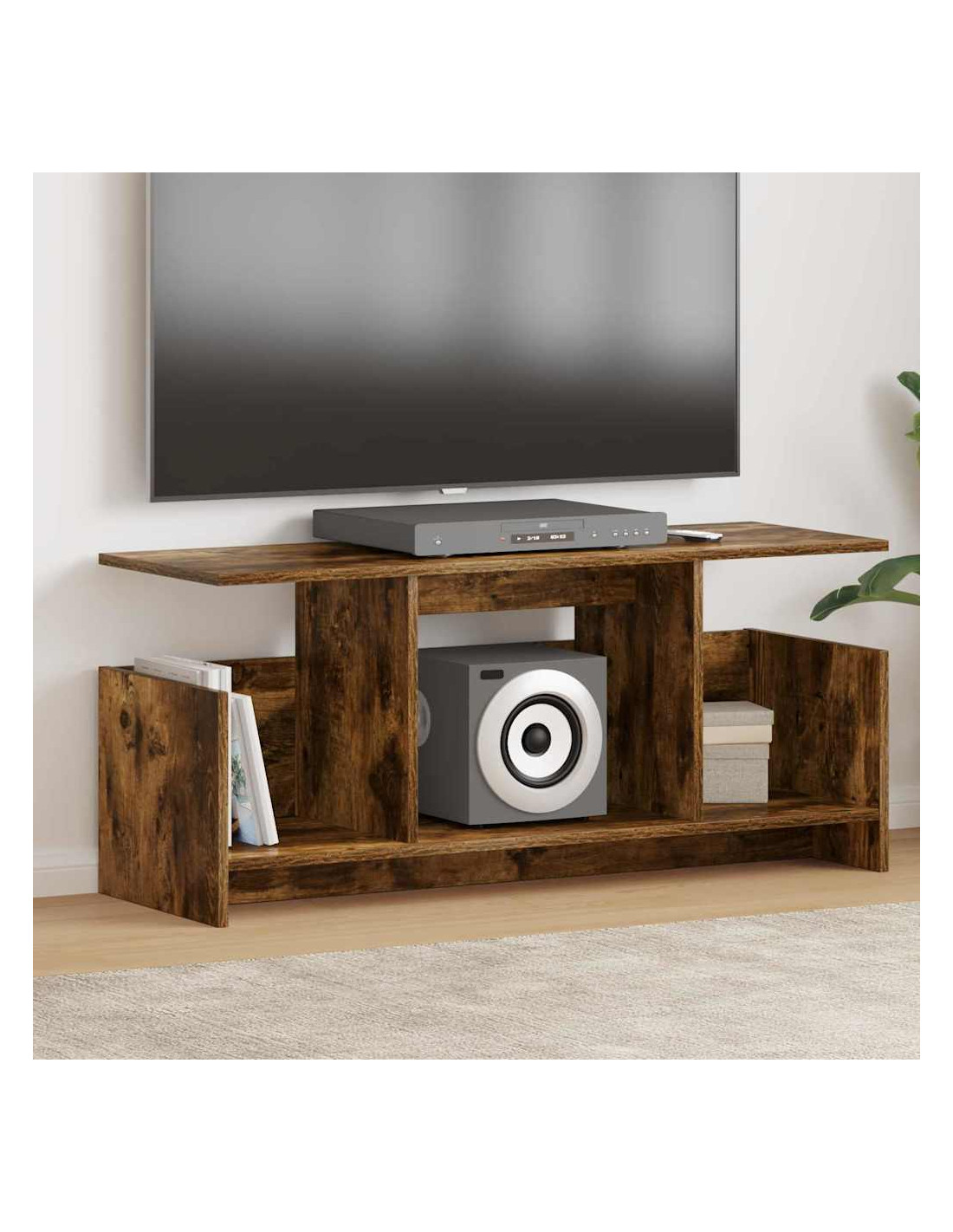 - Spazio di archiviazione ampio I grandi compartimenti di stoccaggio permettono di tenere in ordine i tuoi dispositivi e DVD, sfruttando al massimo lo spazio senza creare disordine.