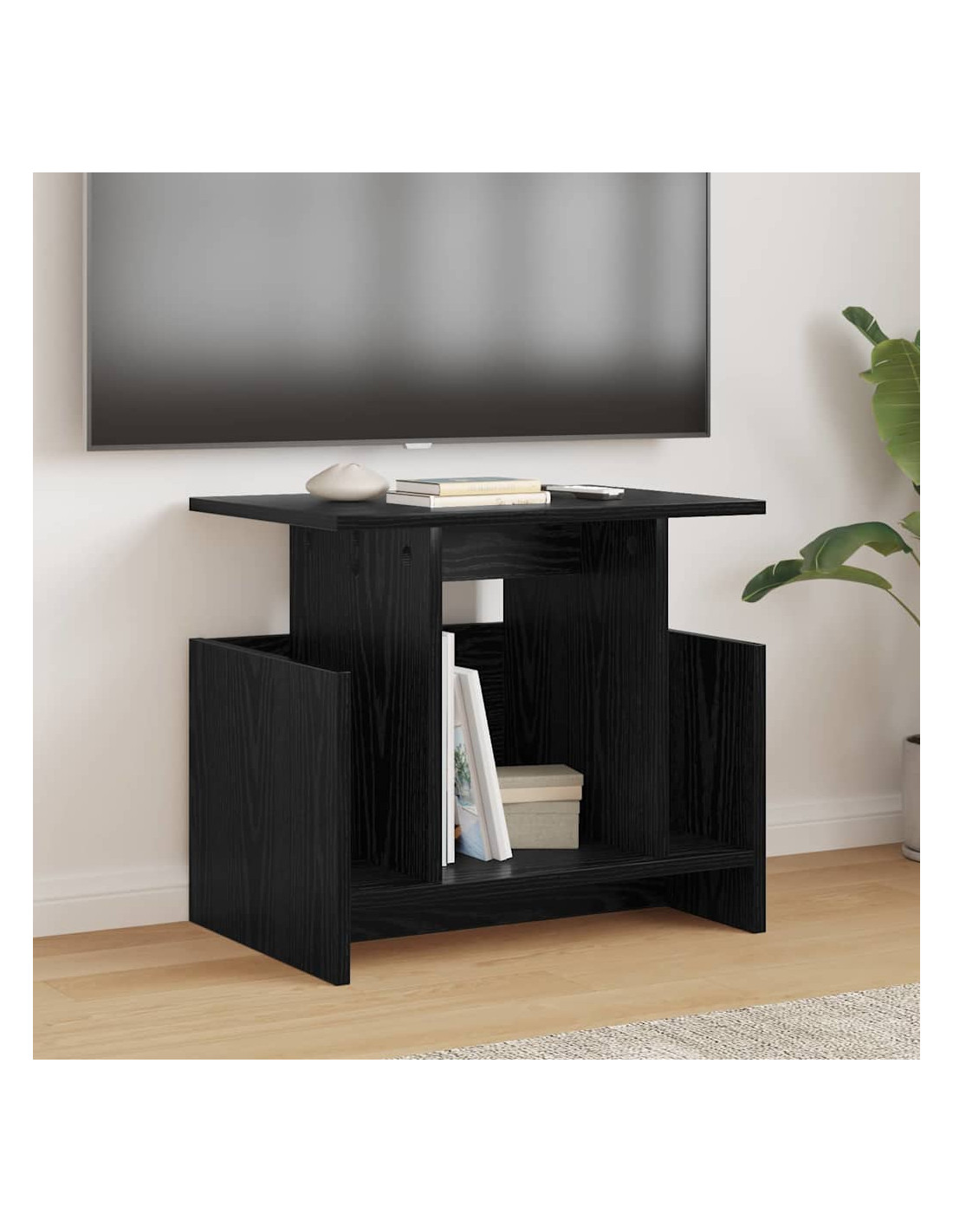 Questo supporto TV moderno, realizzato con legno ingegnerizzato, porta un tocco di classe in ogni soggiorno. Il design snello, con linee semplici e funzionali, si integra perfettamente con l'arredamento contemporaneo, offrendo una soluzione pratica per organizzare gli accessori per i media.