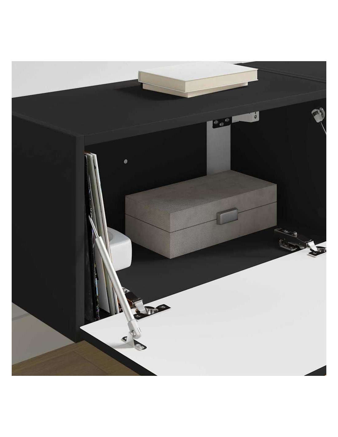- Porte versatili: Con porte girevoli a 90°, offre accesso facile e sfrutta al massimo lo spazio nel tuo soggiorno. Questo dettaglio dona anche un aspetto elegante al mobile.