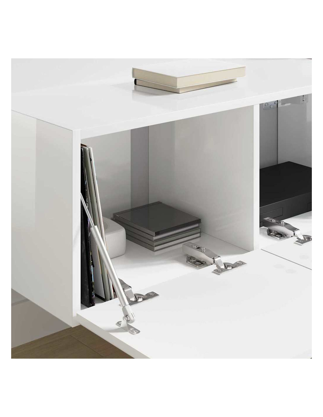 - Porte versatili: Con porte girevoli a 90°, offre accesso facile e sfrutta al massimo lo spazio nel tuo soggiorno. Questo dettaglio dona anche un aspetto elegante al mobile.