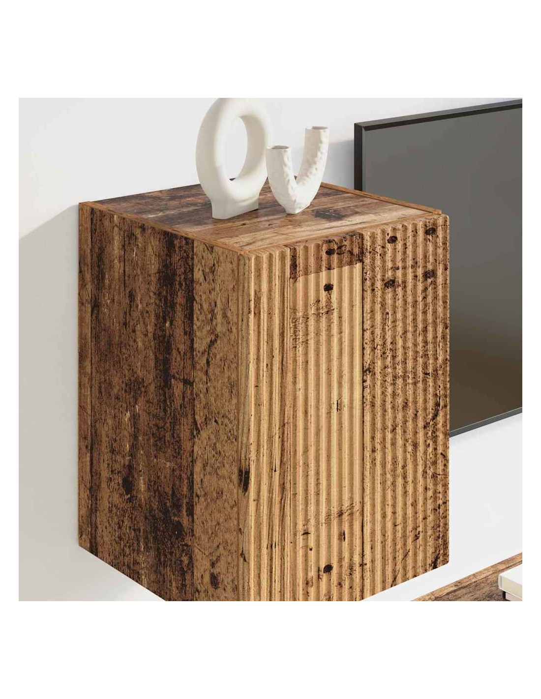 - Costruzione in legno ingegnerizzato: Fatto con legno ingegnerizzato di alta qualità, questo mobile a parete è robusto e affidabile. Il materiale è resistente all'usura, perfetto per mantenere un aspetto sempre attraente. Il suo schema di venature aggiunge eleganza, migliorando l'aspetto del tuo soggiorno.