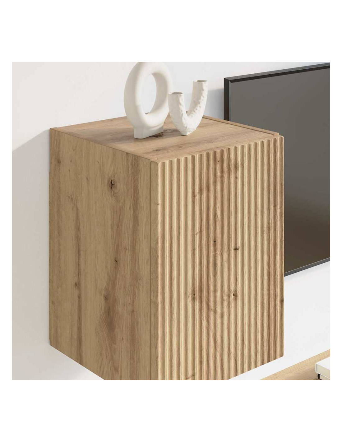 - Costruzione in legno ingegnerizzato: Fatto con legno ingegnerizzato di alta qualità, questo mobile a parete è robusto e affidabile. Il materiale è resistente all'usura, perfetto per mantenere un aspetto sempre attraente. Il suo schema di venature aggiunge eleganza, migliorando l'aspetto del tuo soggiorno.